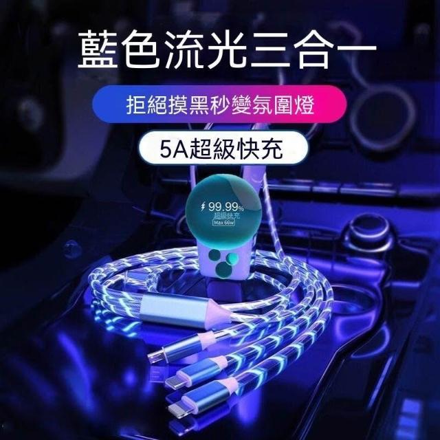 生活首選加長2米一拖三流光數據線適用蘋果16華爲66W快充OPPOvivo車載充電