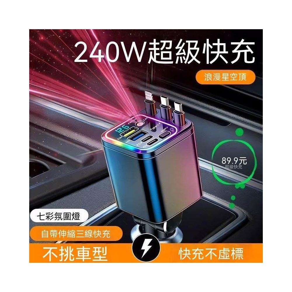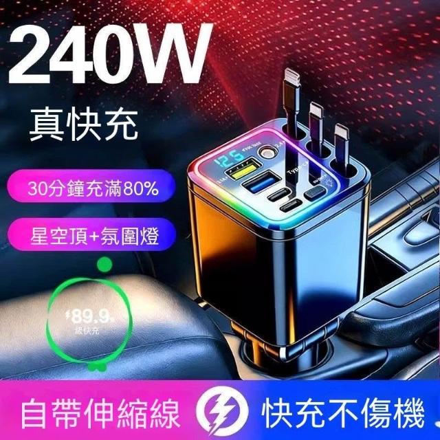 生活首選2026星空頂氛圍車載充電器240W手機超級快充自帶伸縮線汽車轉換頭