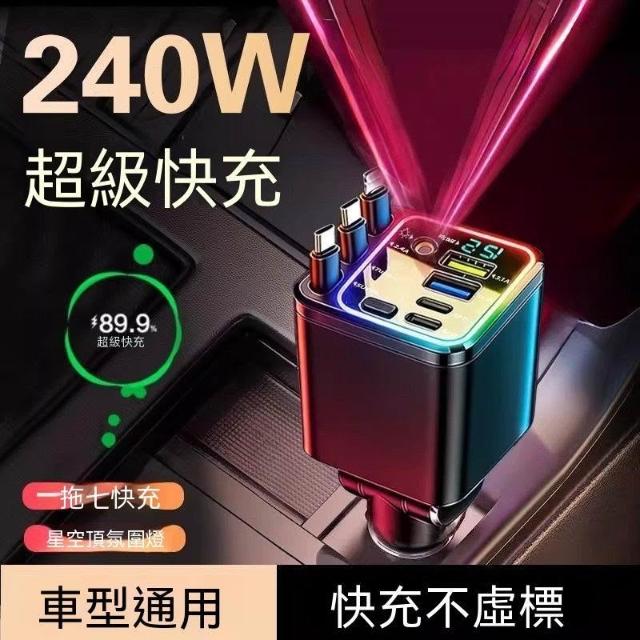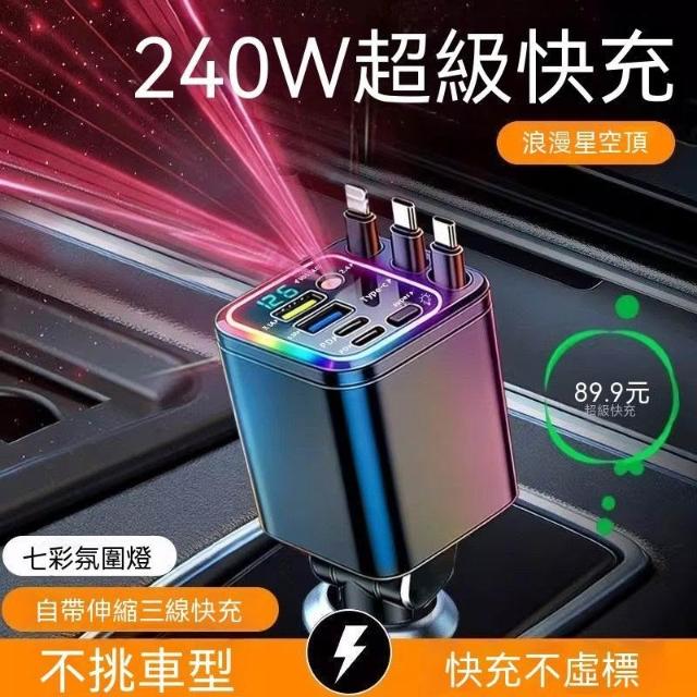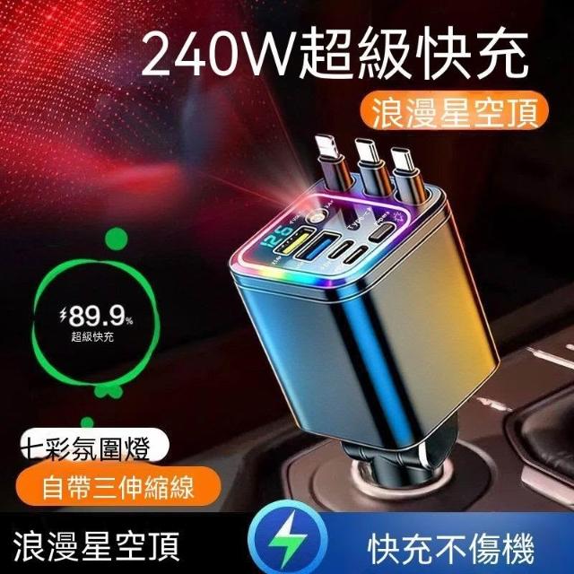 生活首選2026星空頂氛圍車載充電器240W手機超級快充自帶伸縮線汽車轉換頭