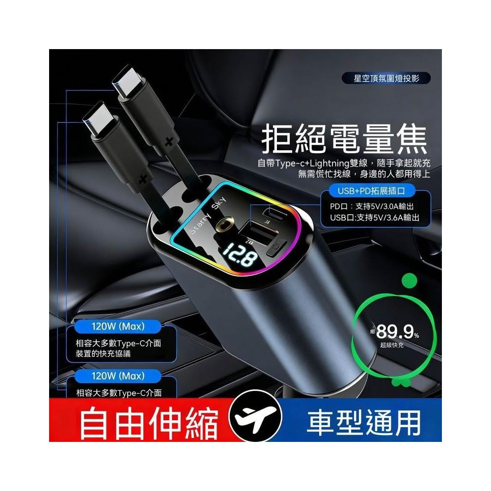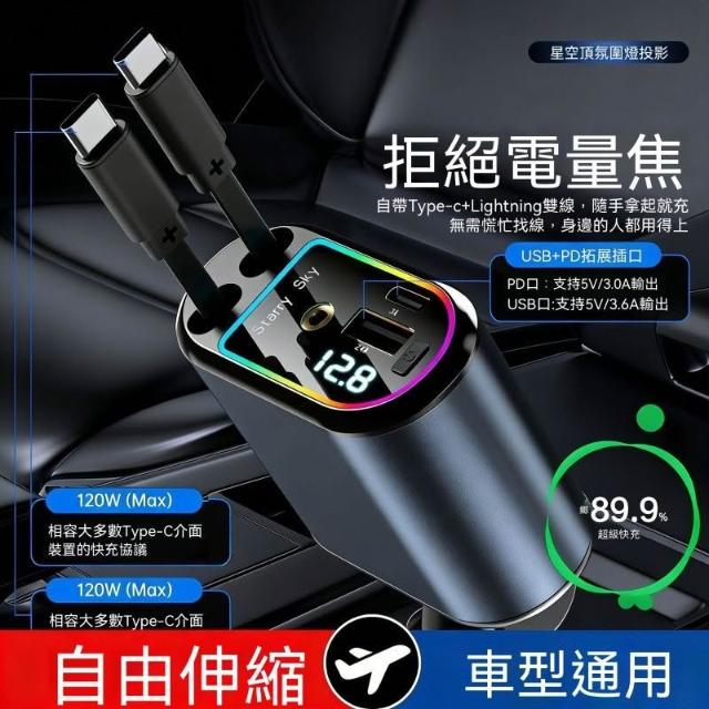生活首選星空車載充電器氛圍手機超級快充伸縮安卓一拖汽車通用蘋果點菸器