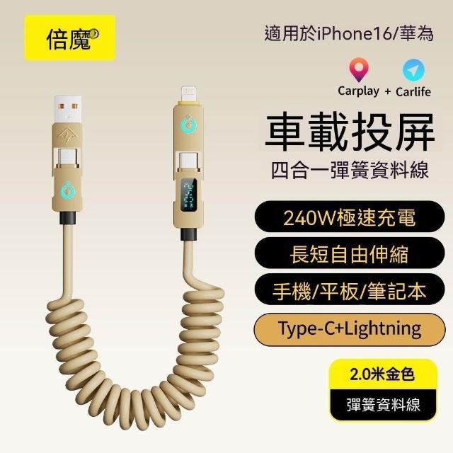 生活首選倍魔車載彈簧線超級快充240W適用蘋果小米華爲一拖四充電數據線