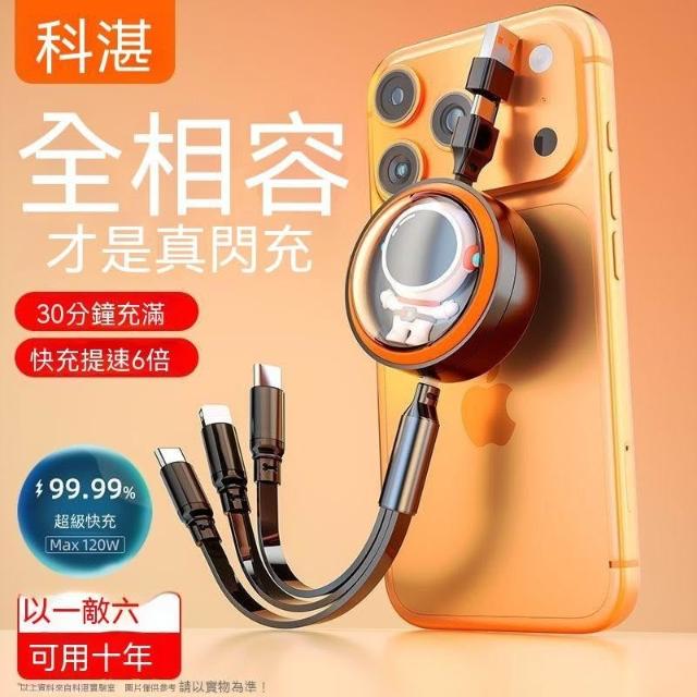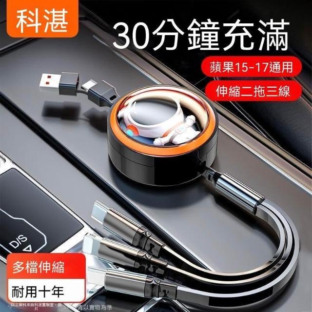 生活首選科湛120W超級快充二拖三數據線6A三合一充電線適用蘋果17華爲小米