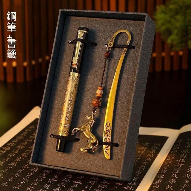 生活首選品卓好禮馬年高級書籤鋼筆套盒商務高端簽字筆中國風定製送老師用