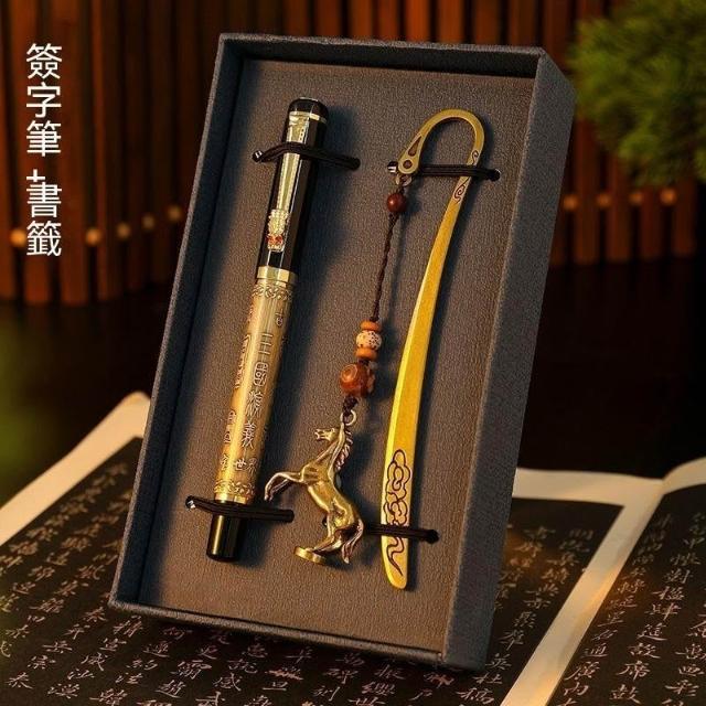 生活首選品卓好禮馬年高級書籤鋼筆套盒商務高端簽字筆中國風定製送老師用