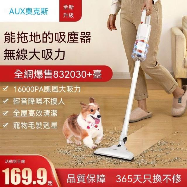 生活首選奧克斯無線吸塵器家用手持式牀上除塵蟎寵物毛髮大吸力溼拖一體機