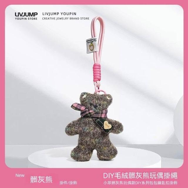 生活首選毛絨玩具萌髒髒熊公仔可愛玩偶鑰匙扣小掛件包包揹包掛飾情侶手繩
