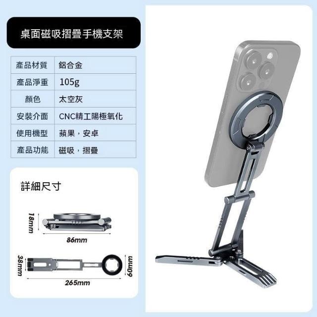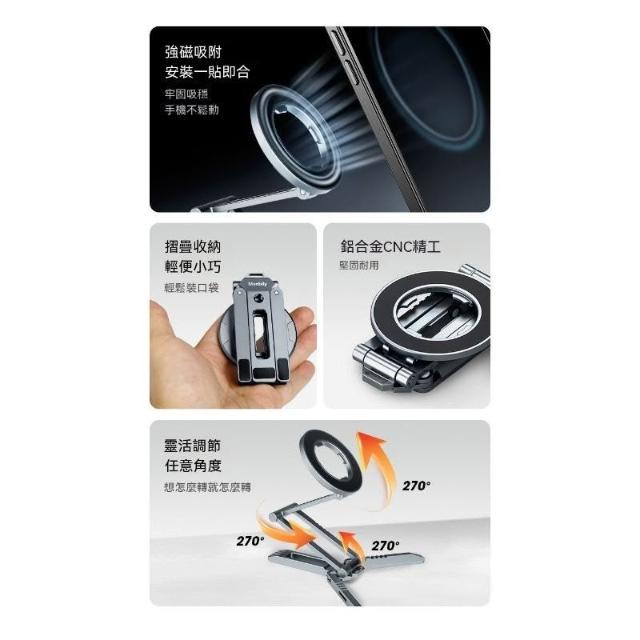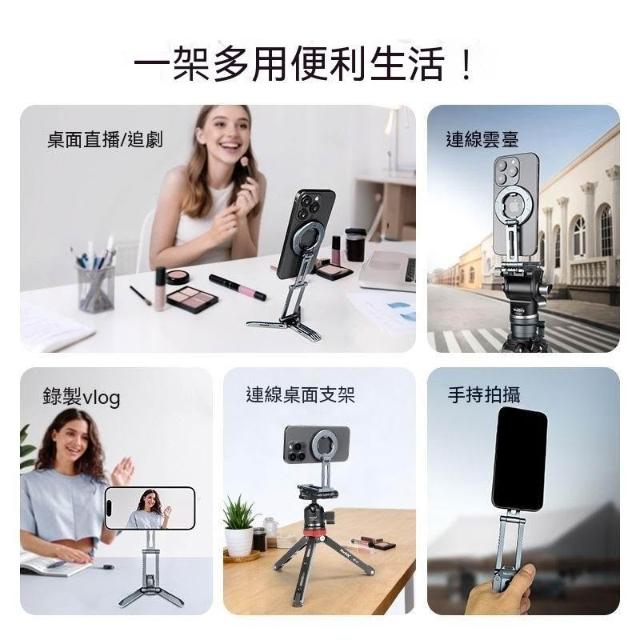 生活首選曼比利手機磁吸magsafe支架摺疊旋轉鋁合金屬夾桌面三腳架
