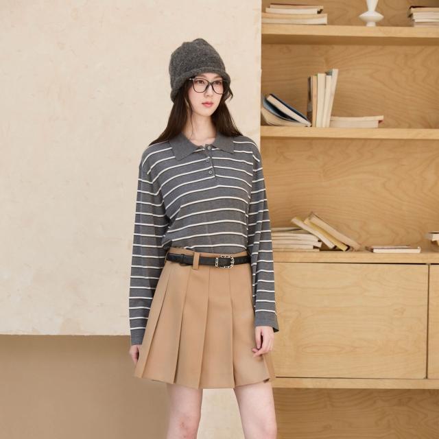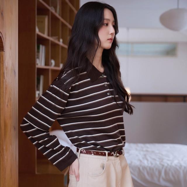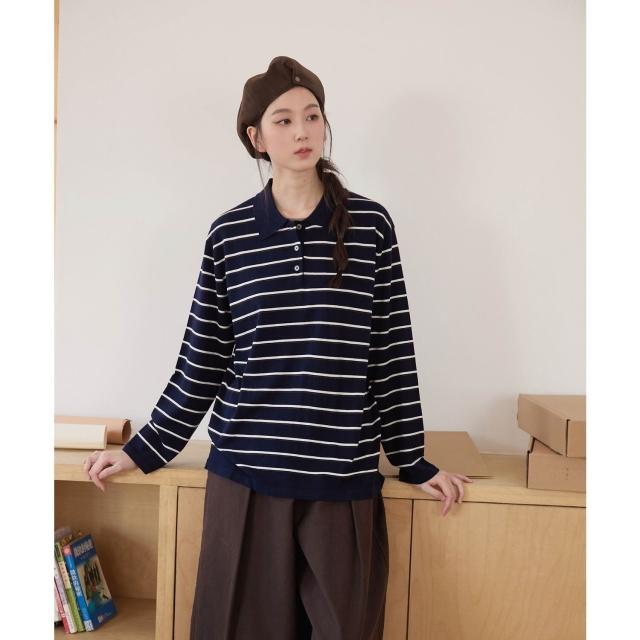 早秋條紋polo針織打底衫美式條紋控日常通勤休閑內搭百搭