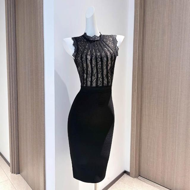 修身氣質黑色白色蕾絲連衣裙緊身包臀裙連衣裙繃帶裙