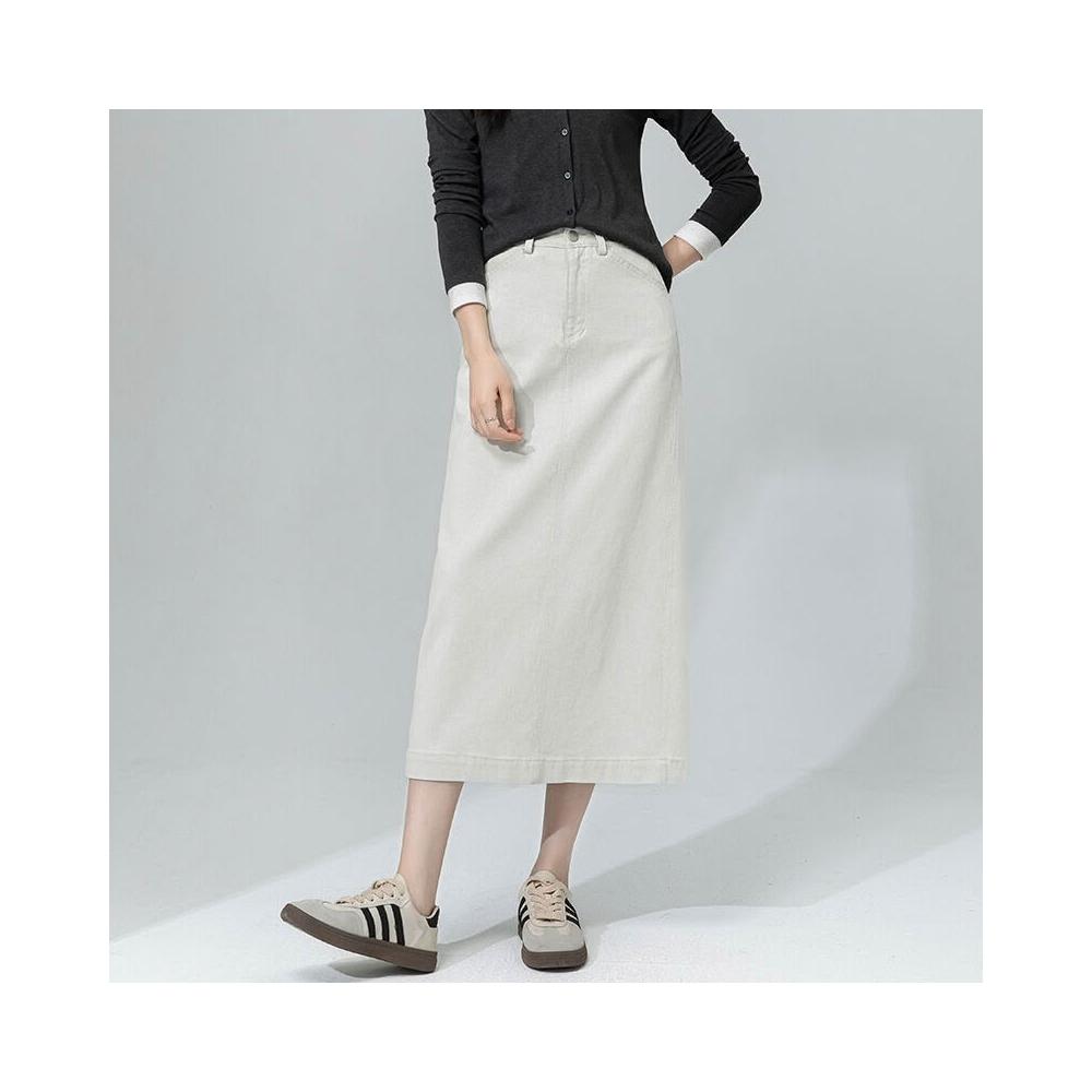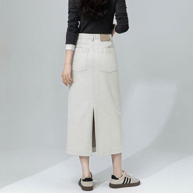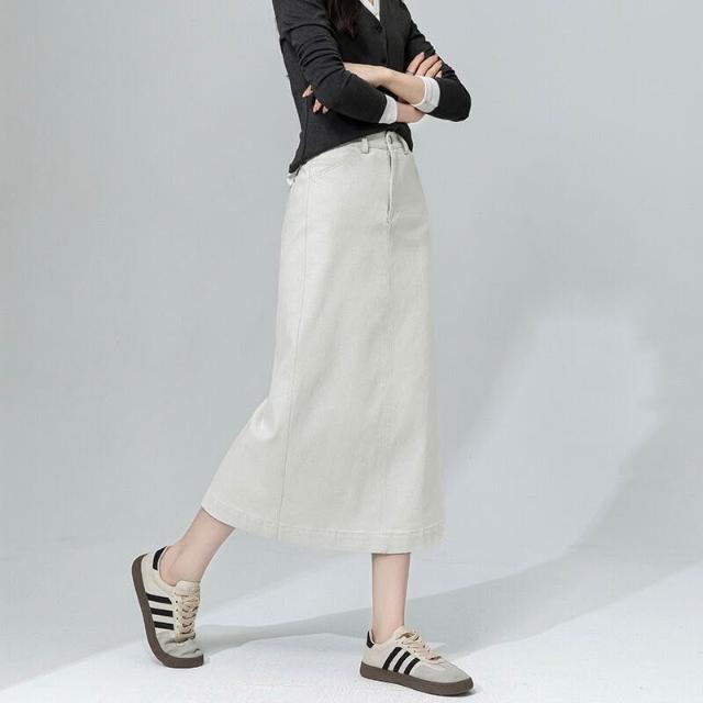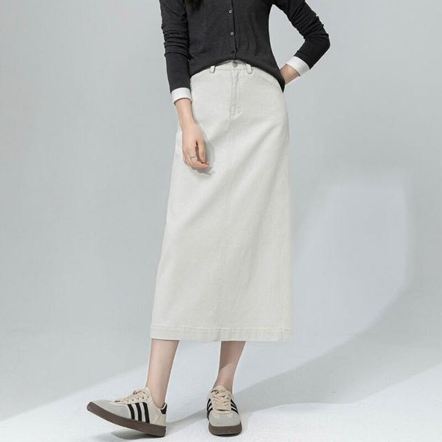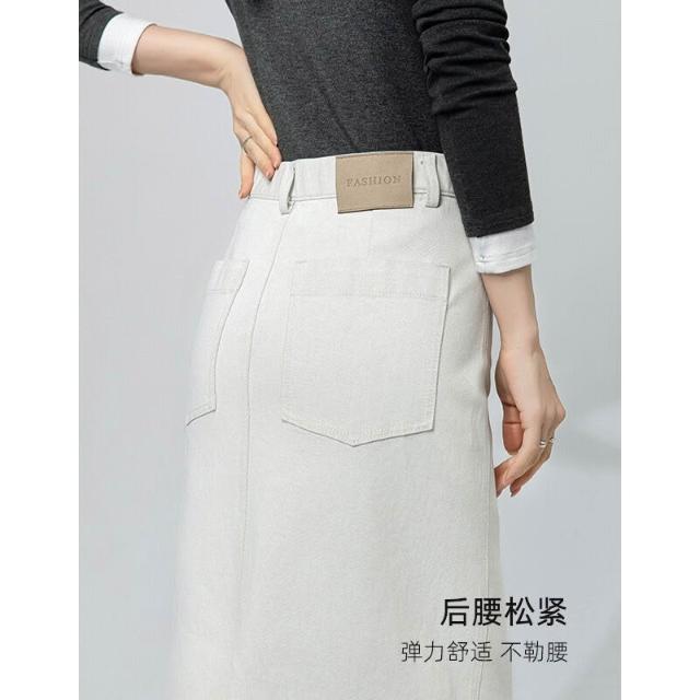 鑫閣 白色牛仔半身裙女秋季新款高腰包臀裙極簡風顯瘦中長款半裙