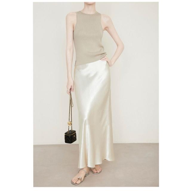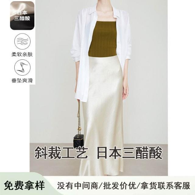 白珍珠/三醋酸褶皺半身裙高腰a字包臀魚尾裙肌理感垂墜醋酸裙