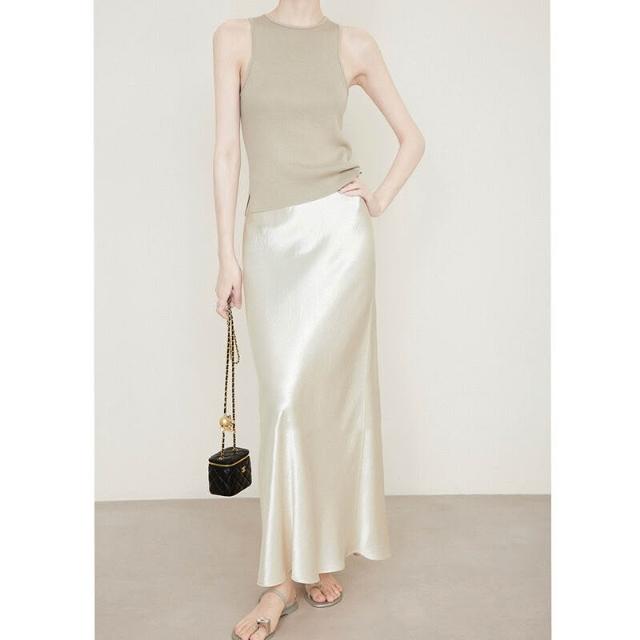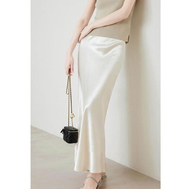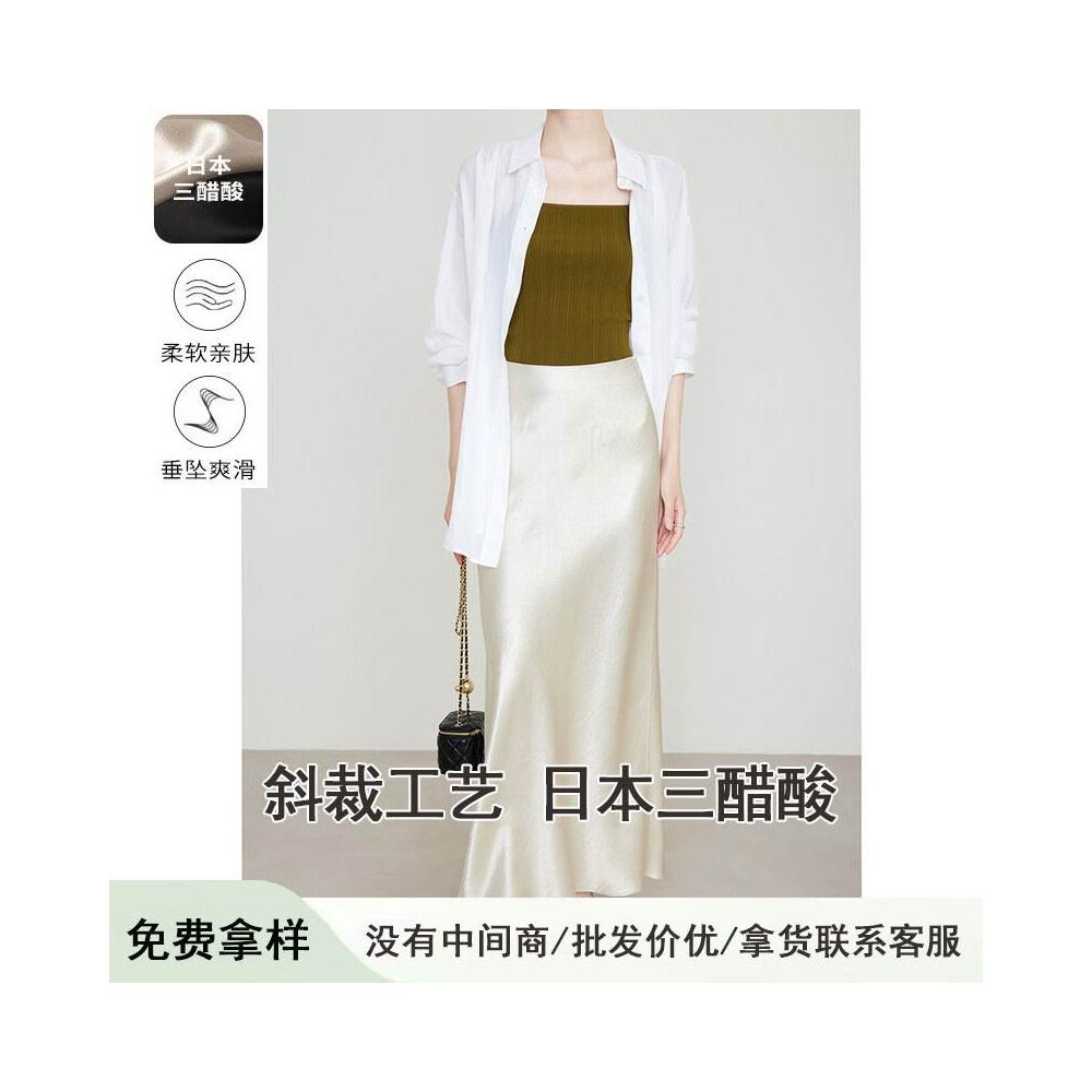 白珍珠/三醋酸褶皺半身裙高腰a字包臀魚尾裙肌理感垂墜醋酸裙