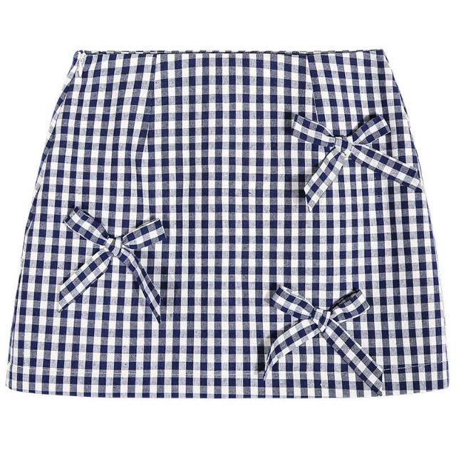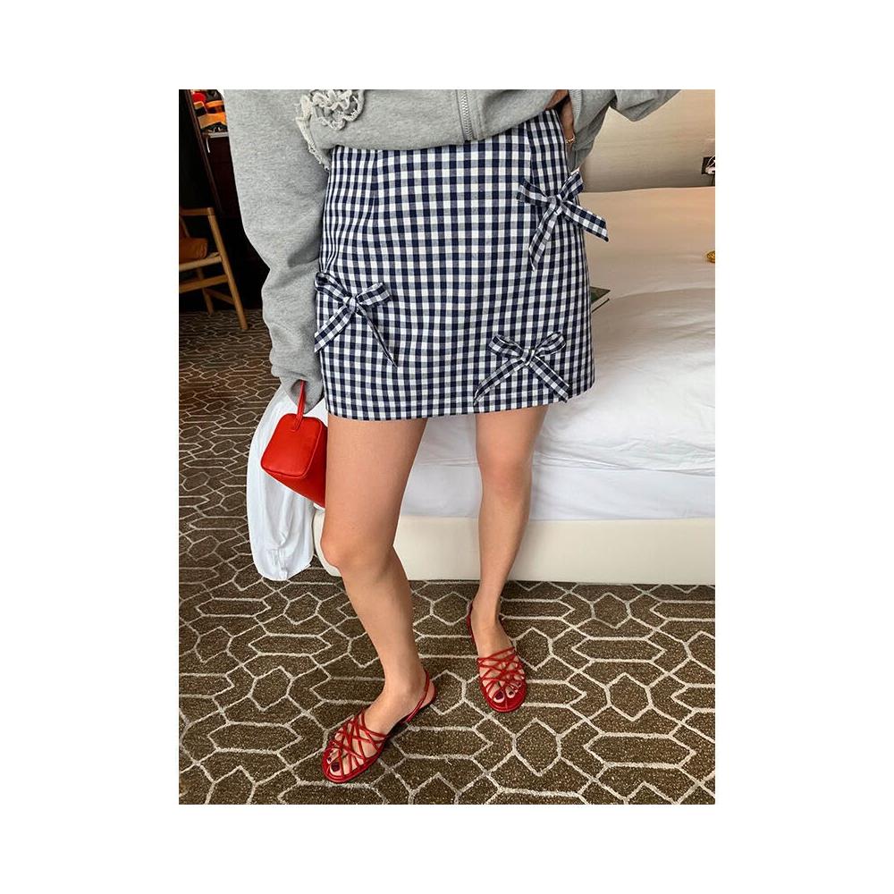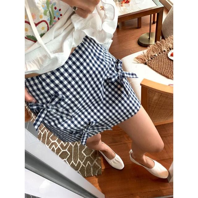 落落狷介 a字半身裙女2025年新款設計感小眾蝴蝶結格子半裙包臀裙