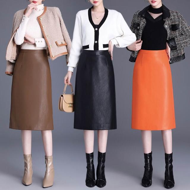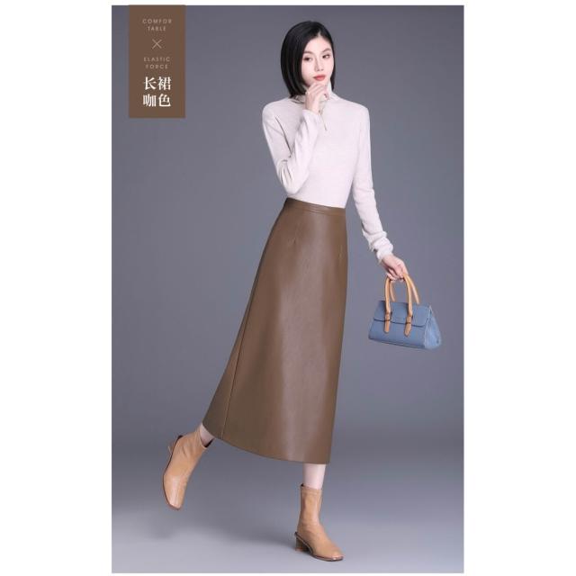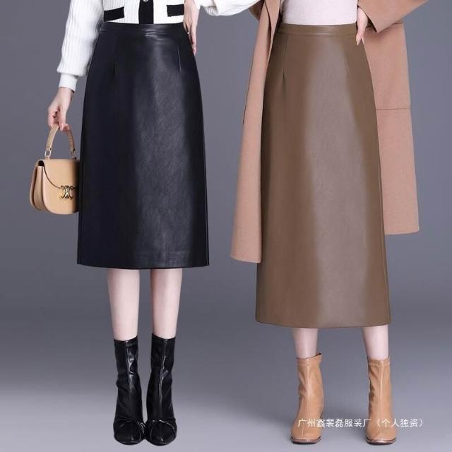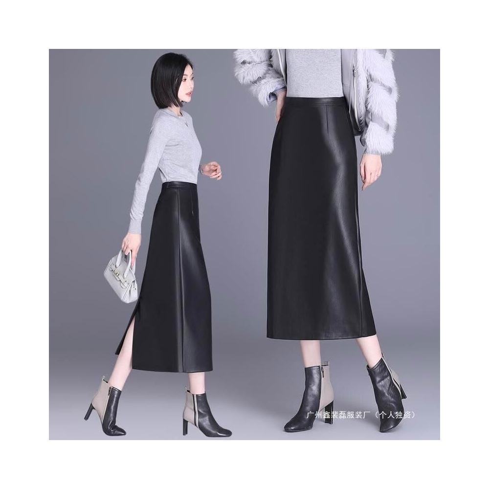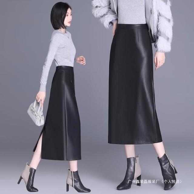顯瘦開叉包臀裙2025一步新款長裙女高腰綿羊皮裙半身裙A字裙秋冬