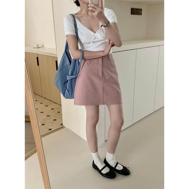 半裙A字裙女2025夏季新款高腰百搭半身裙女牛仔短裙包臀裙