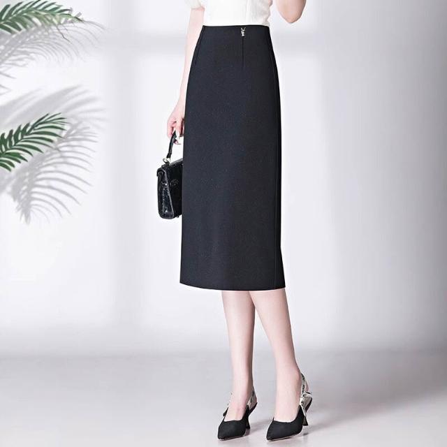 2025春秋半身裙中長裙包臀裙黑色開叉一步裙高腰彈力ol大碼包裙女