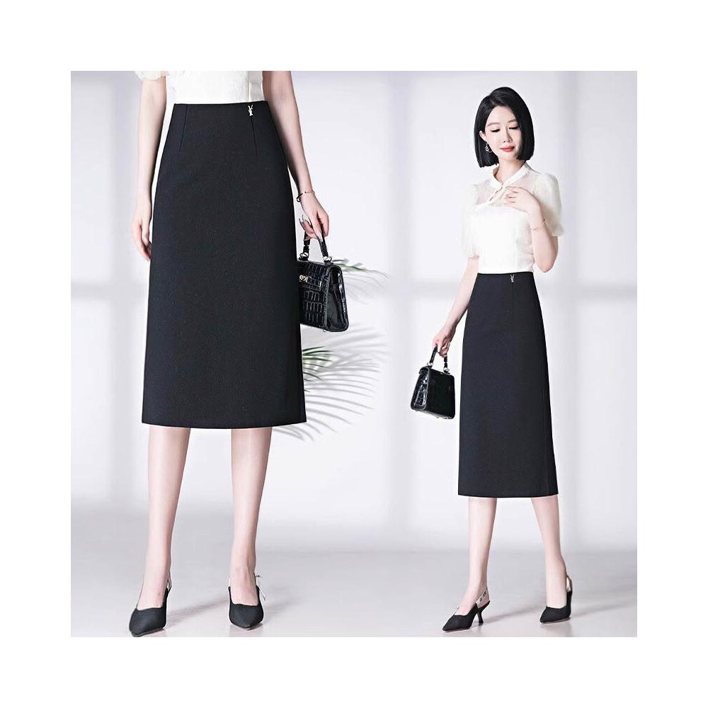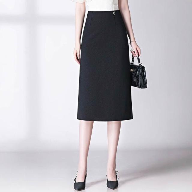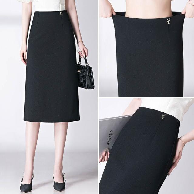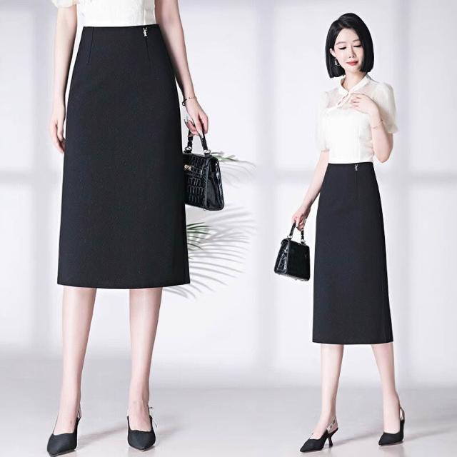 2025春秋半身裙中長裙包臀裙黑色開叉一步裙高腰彈力ol大碼包裙女