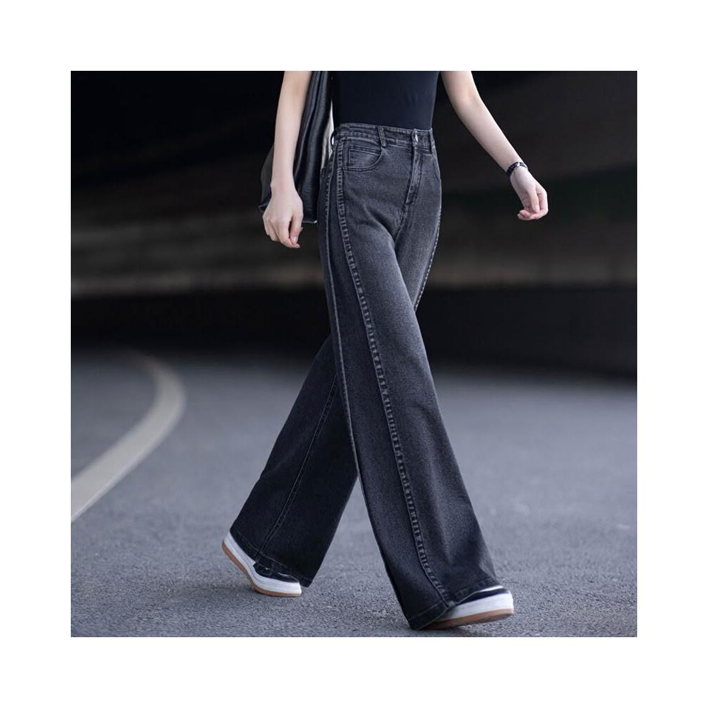 黑色牛仔褲女2025新款秋冬褲子今年流行的寬松直筒褲彎刀闊腿褲女