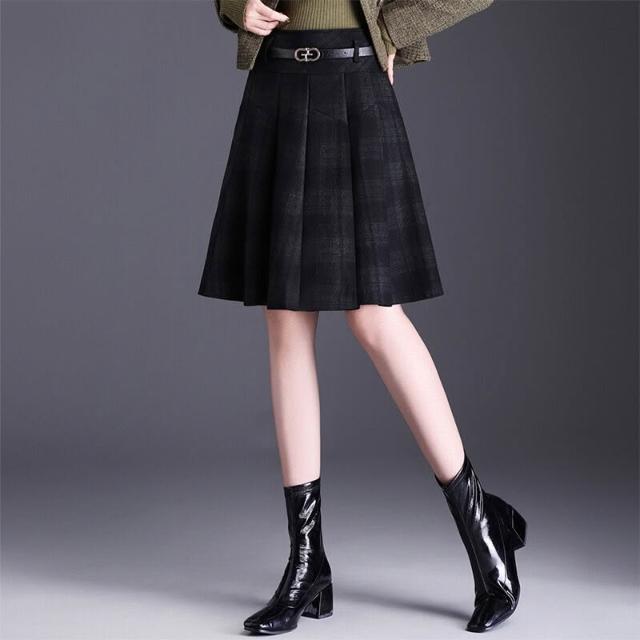 格子百褶裙A字裙小個子短裙2025年秋冬季高腰遮胯顯瘦時尚半身裙