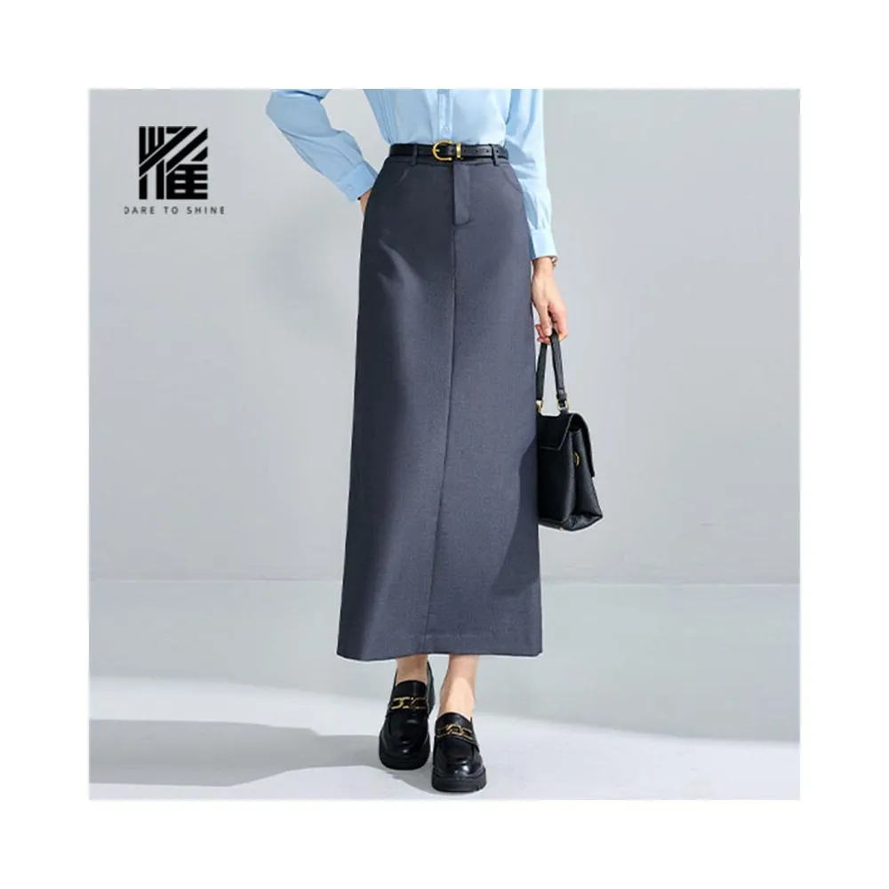 耀火灰色直筒半身裙女2025春夏新款面試正裝中長裙職業通勤西裝裙