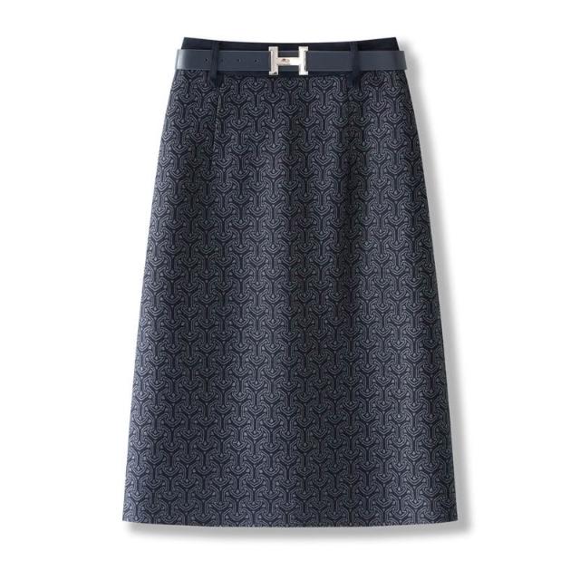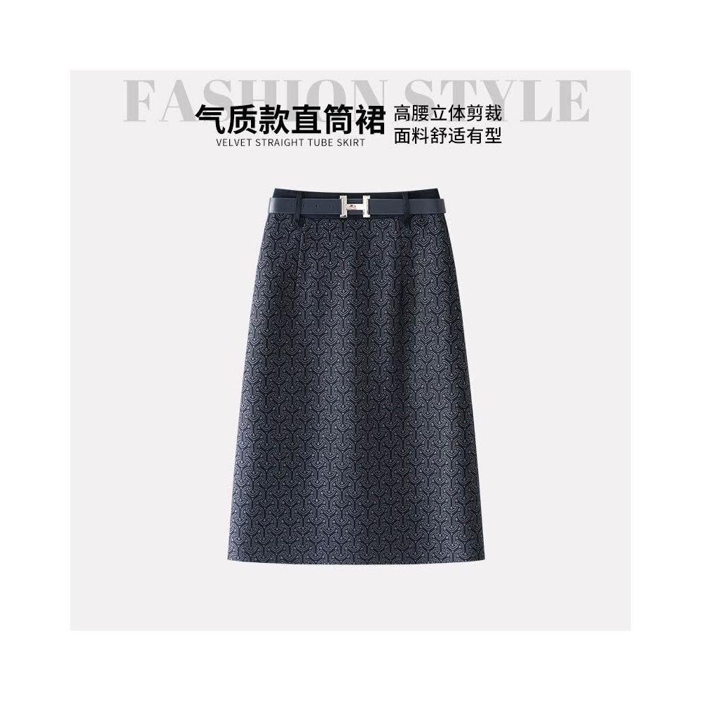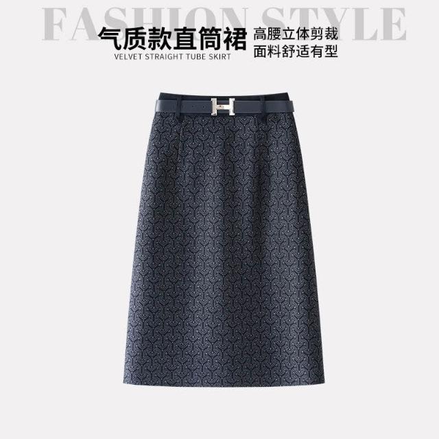 藏青色仿牛仔半身裙秋冬款女2025新款氣質直筒包臀裙後開叉中裙