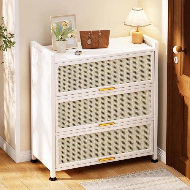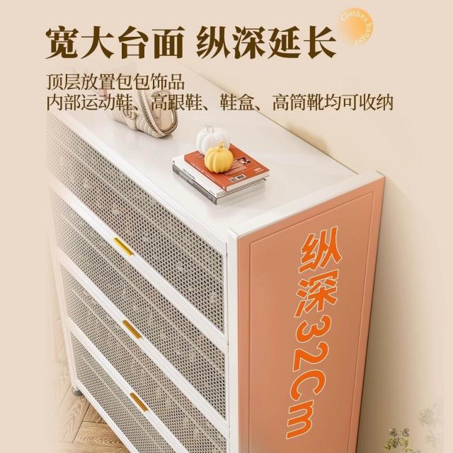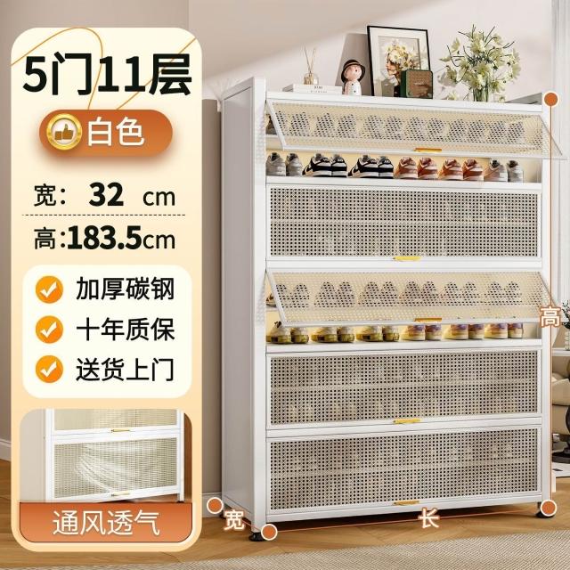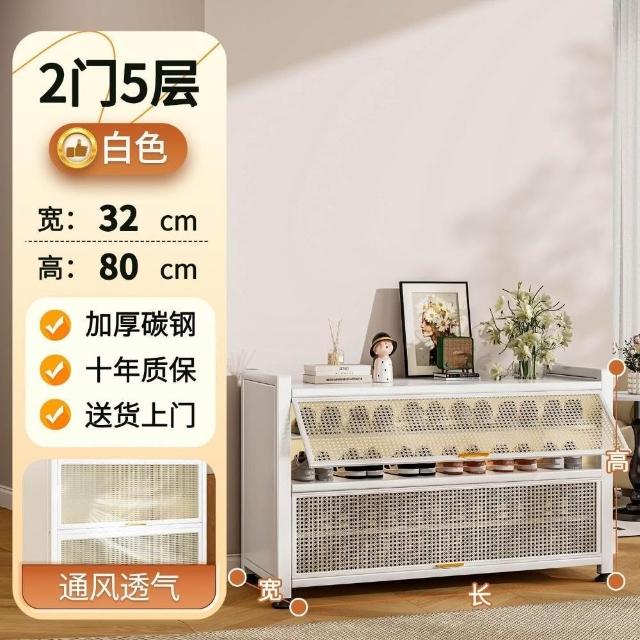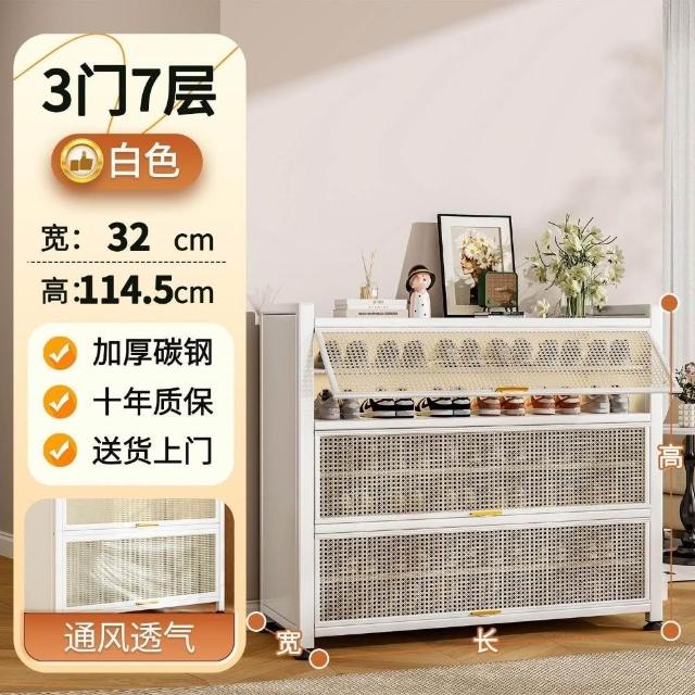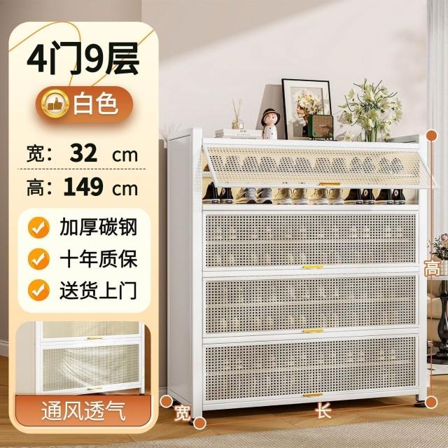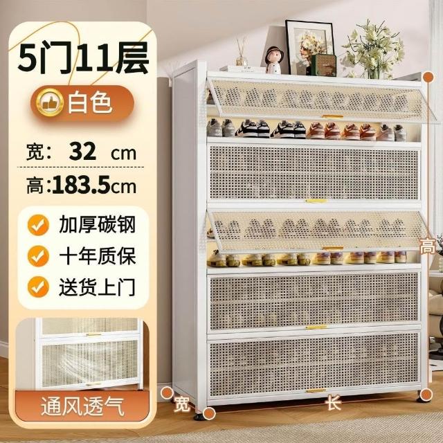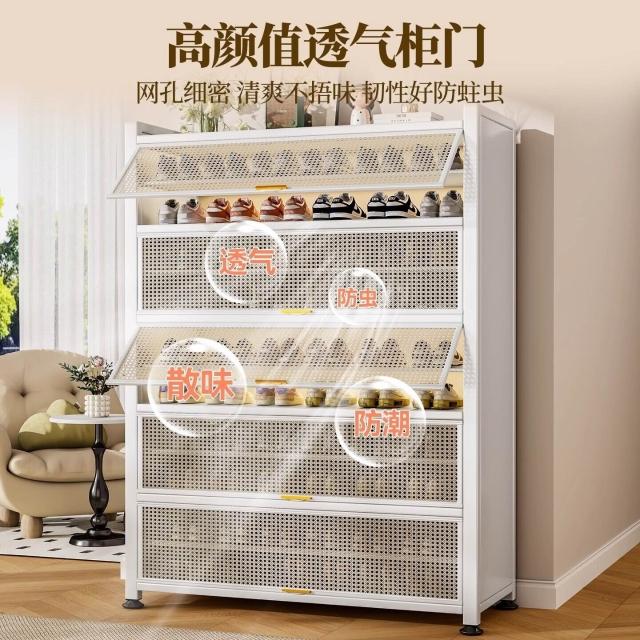 藤編鞋櫃家用門口多層透氣大容量金屬鞋架一體靠墻鋼製鐵皮收納櫃