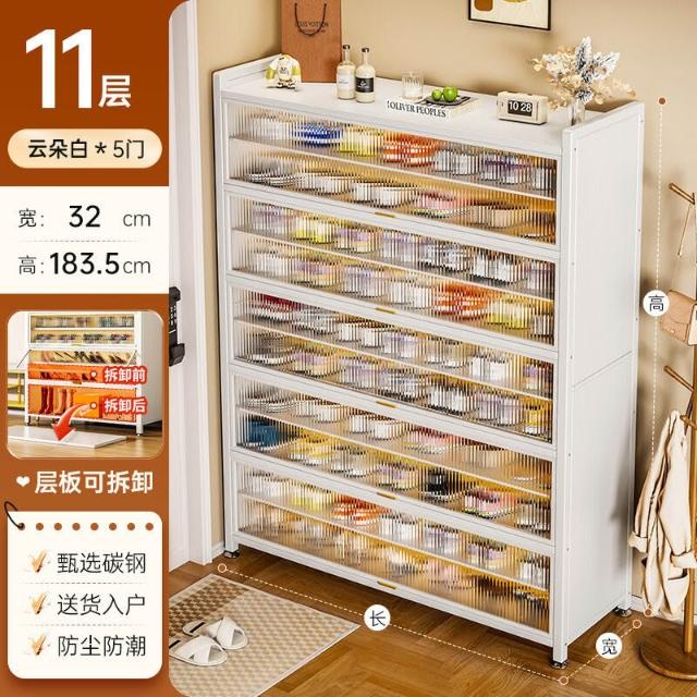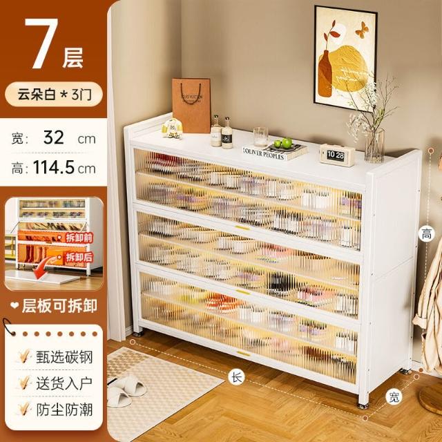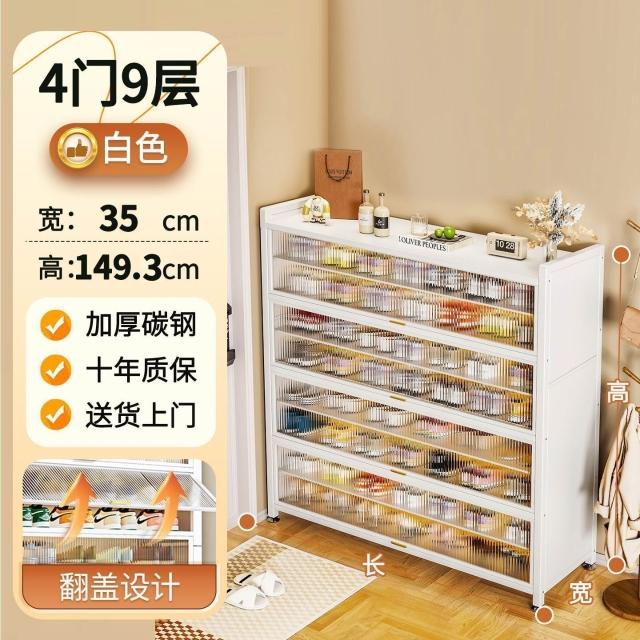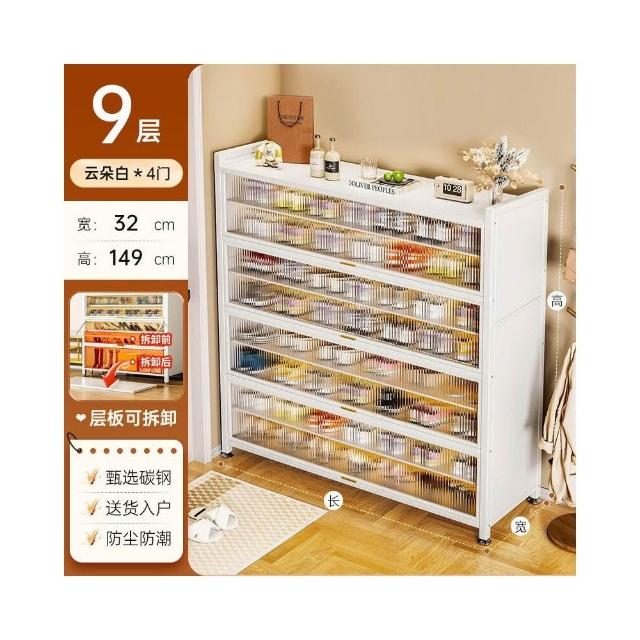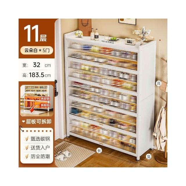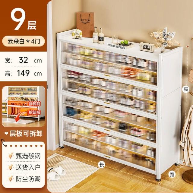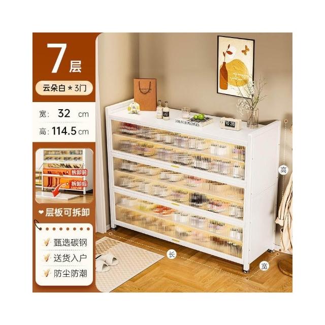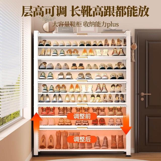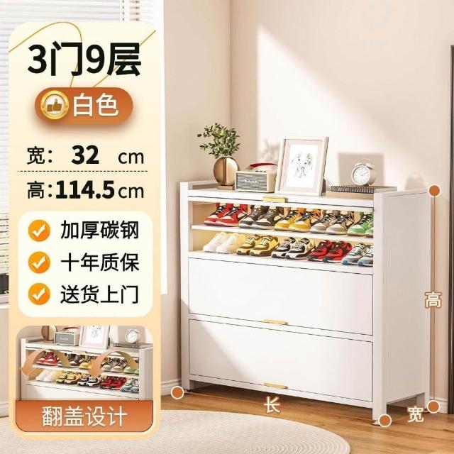 藤編鞋櫃家用門口多層透氣大容量金屬鞋架一體靠墻鋼製鐵皮收納櫃