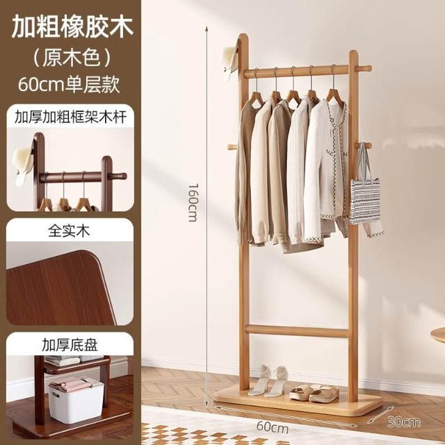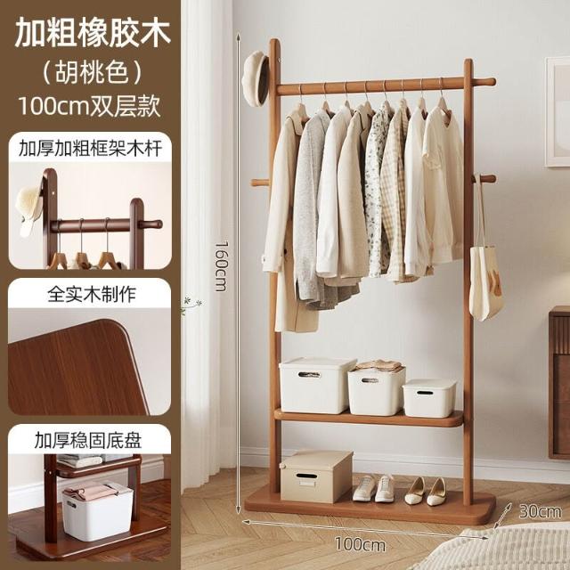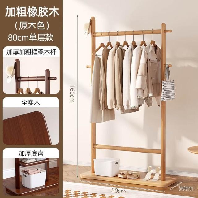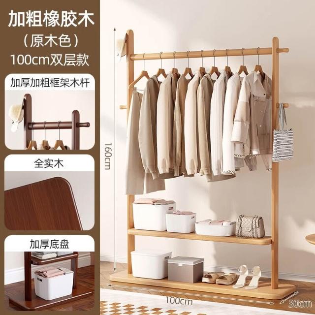 全實木衣帽架落地臥室掛衣架子辦公室客廳家用室內不占空間掛衣架