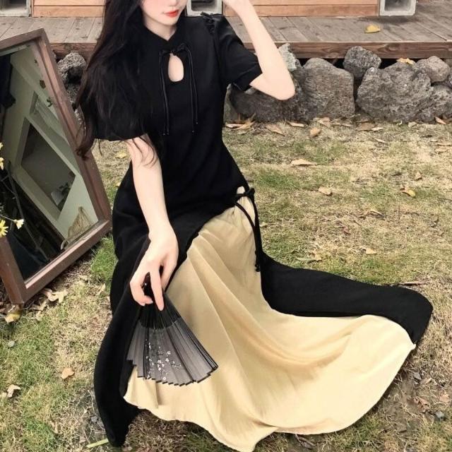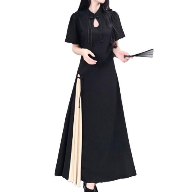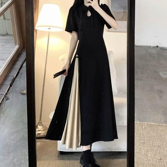 國風女裝夏大碼夏季新中式改良旗袍連衣裙胖MM開叉顯瘦遮肚裙子女