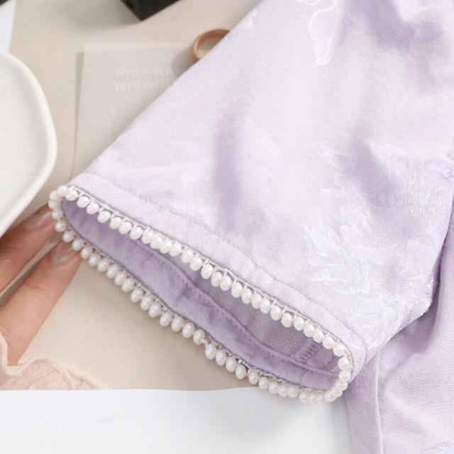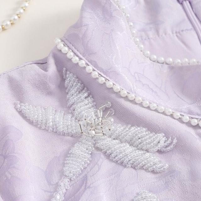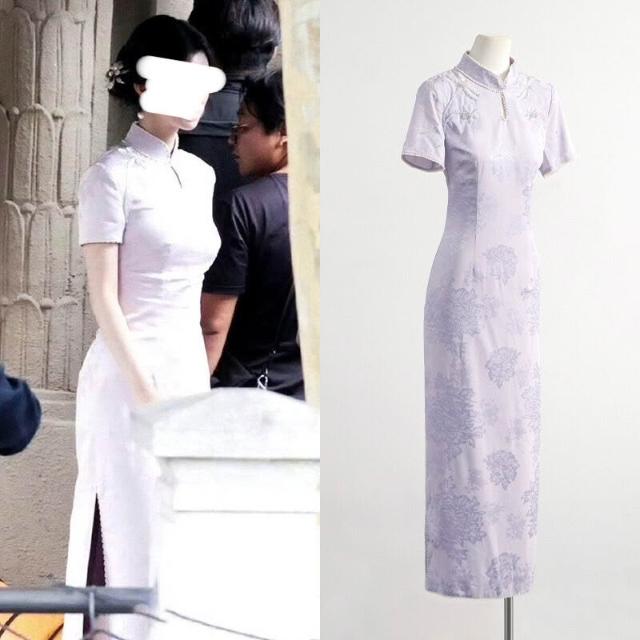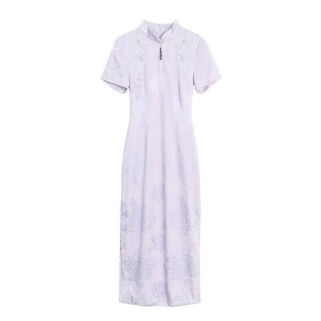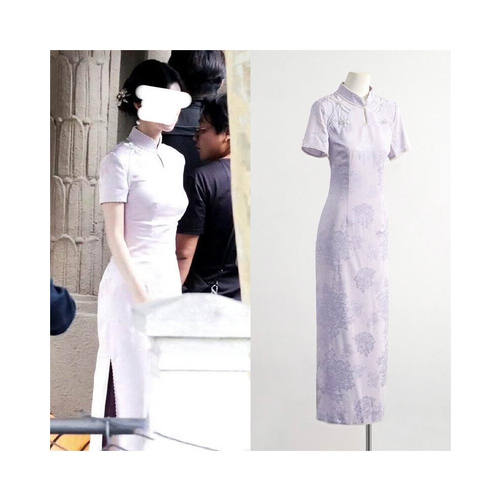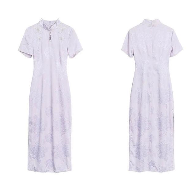 []王楚然同款時尚新中式國風開叉旗袍刺繡立領盤扣修身連衣裙