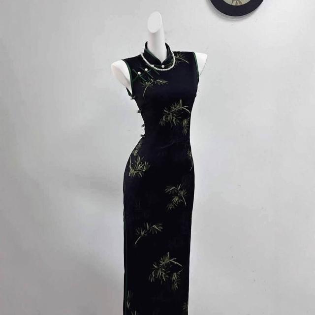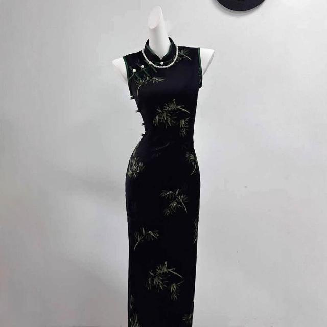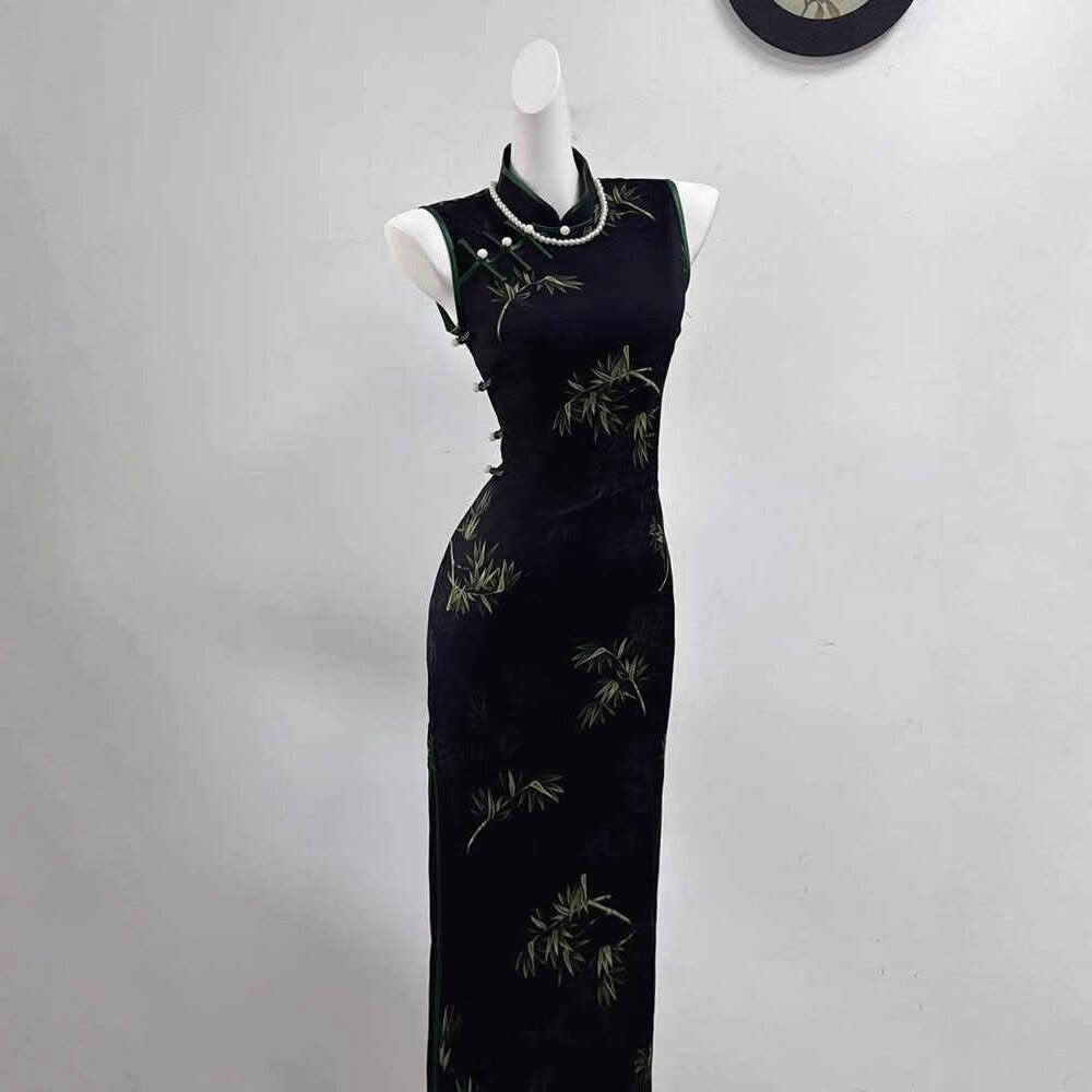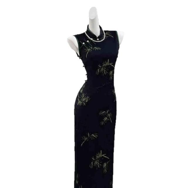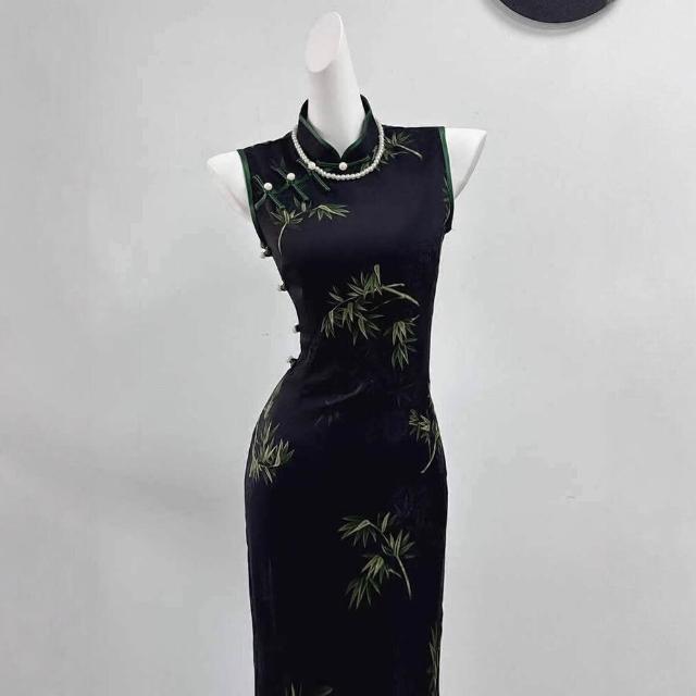 黑色旗袍2025新款春夏季新中式國風修身無袖連衣裙高端大氣上檔次