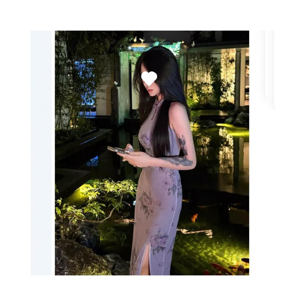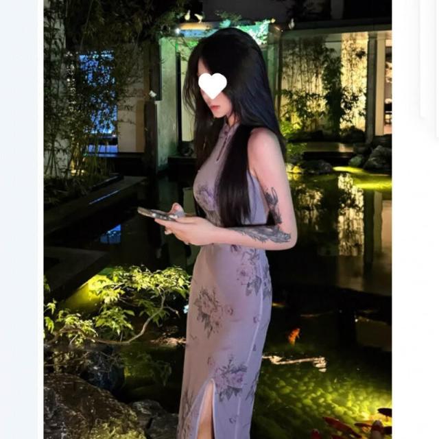 新中式印花镂空改良旗袍裙女溫柔風設計感小眾開叉裙