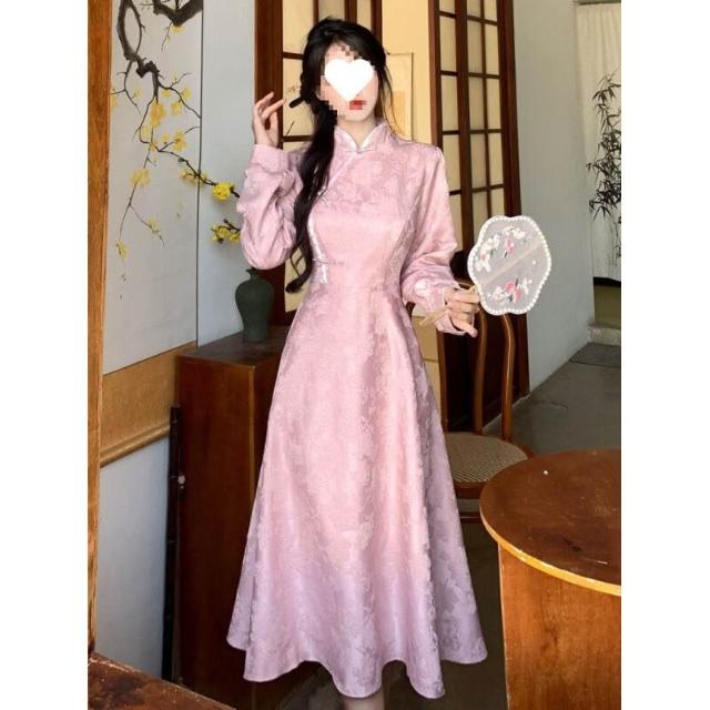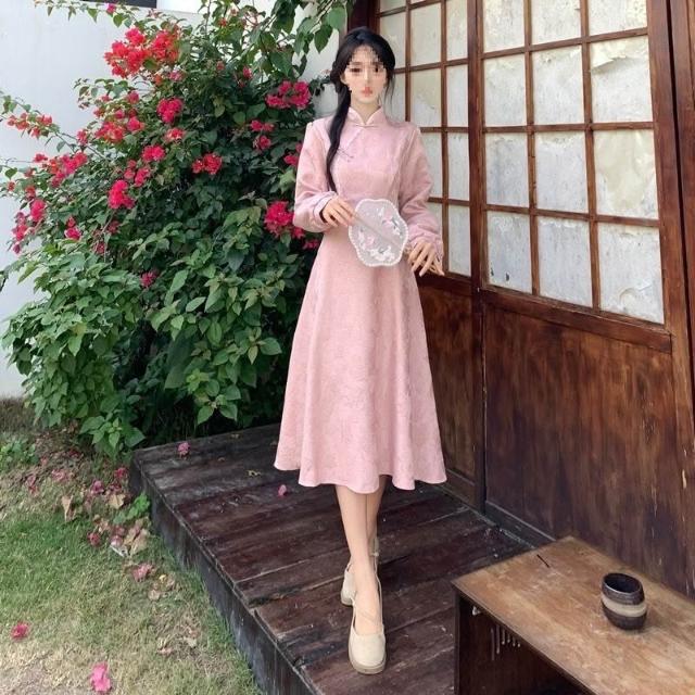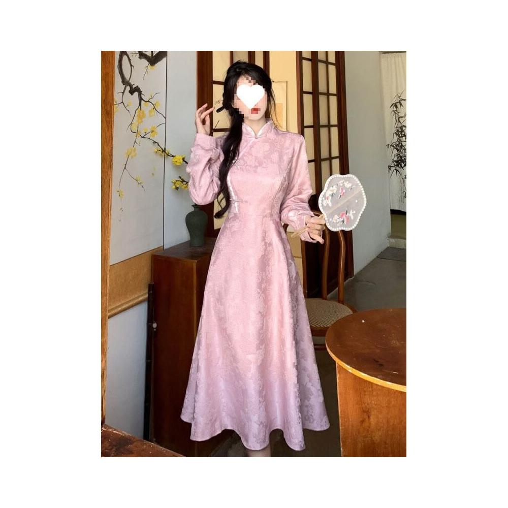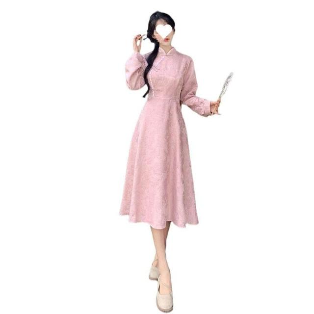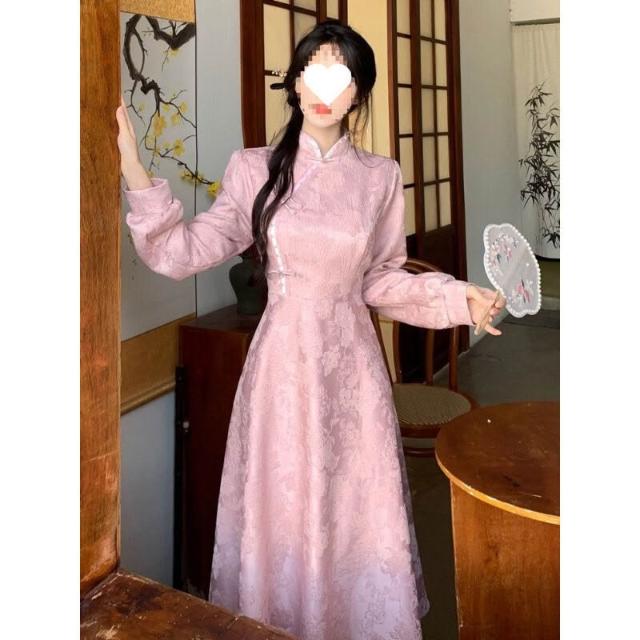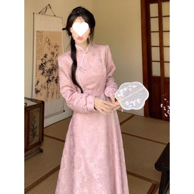 大碼新中式粉色改良旗袍連衣裙女夏季新款感訂婚禮服伴娘長裙笙隴