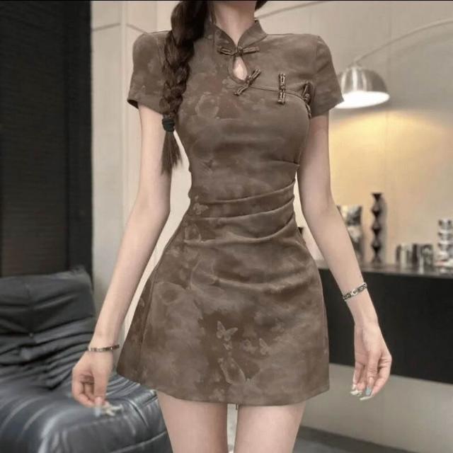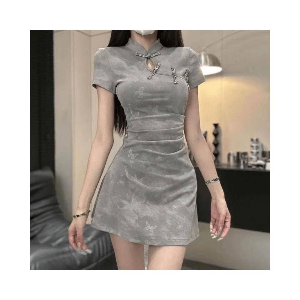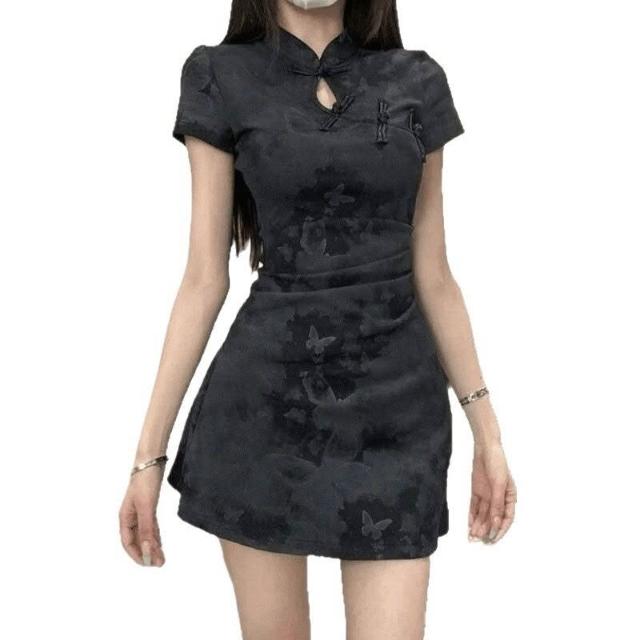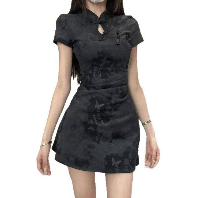 新中式國風改良旗袍盤扣立領連衣裙女2025夏新款修身收腰顯瘦裙子