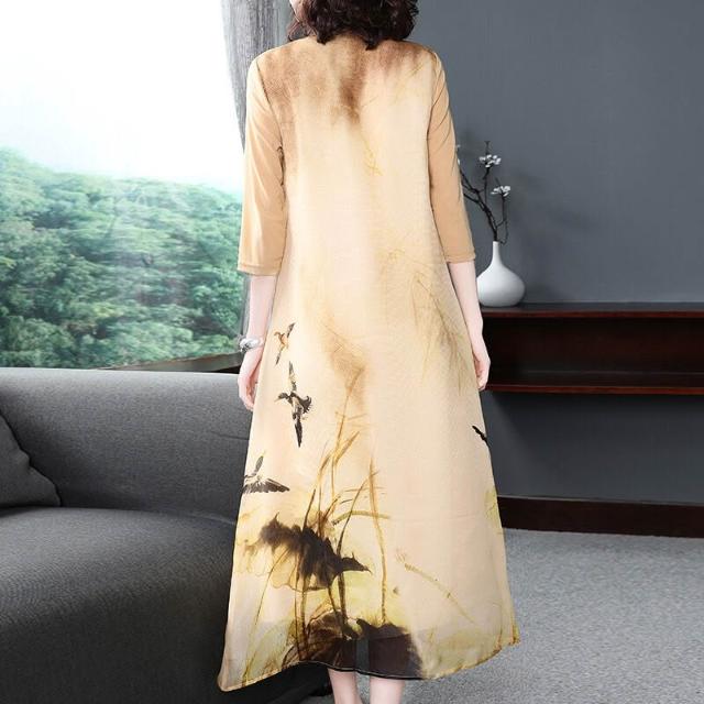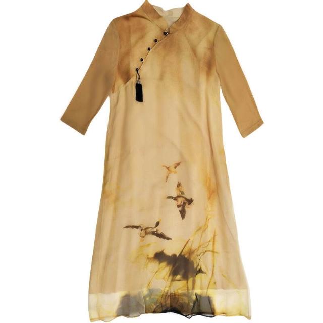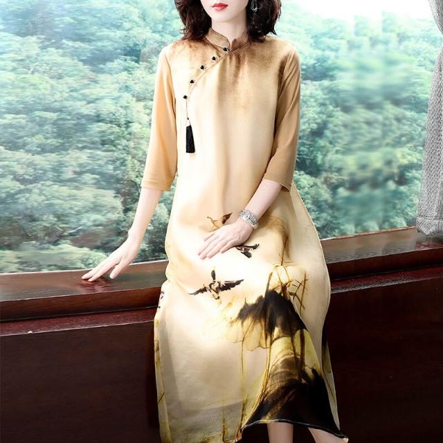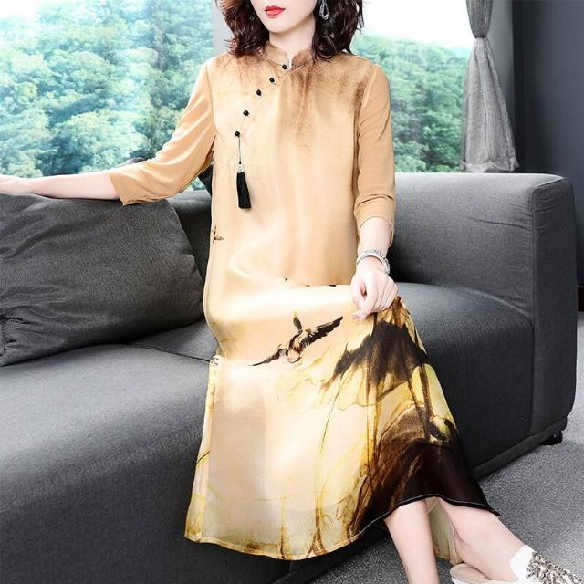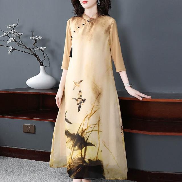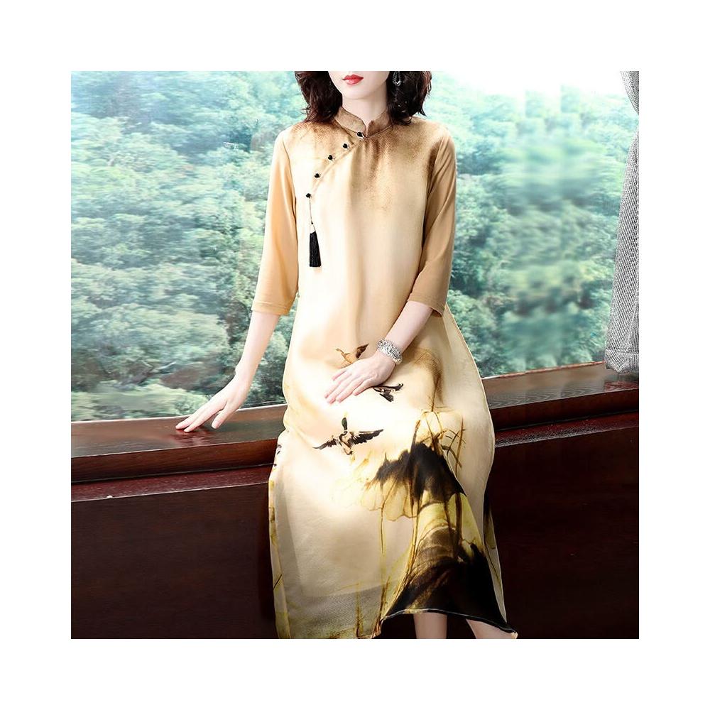 主推款中國風女裝改良旗袍2022春夏立領盤扣印花連衣裙