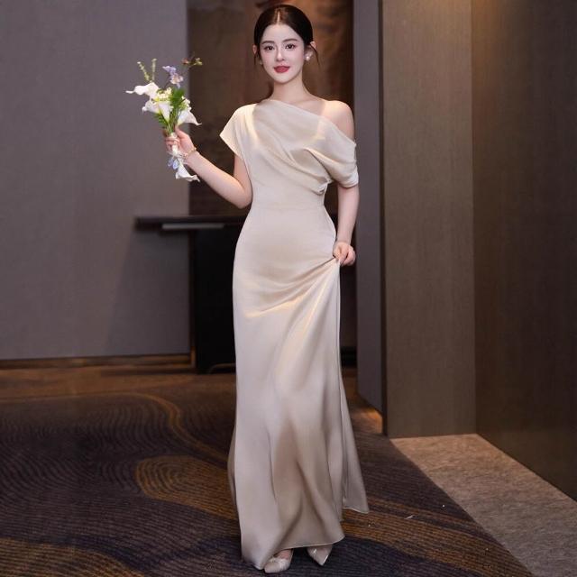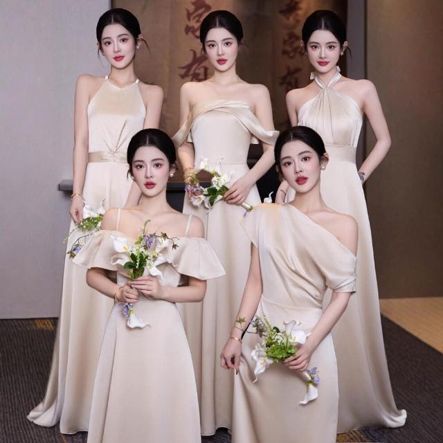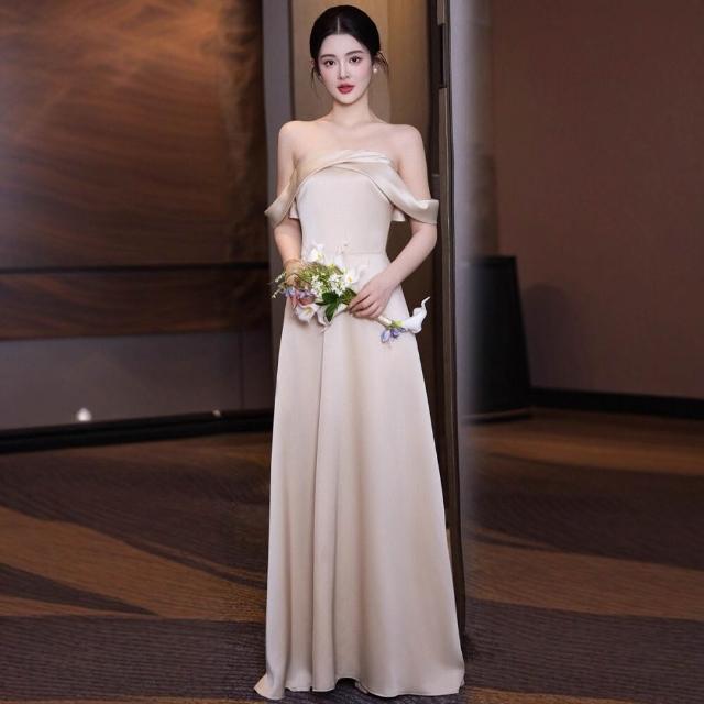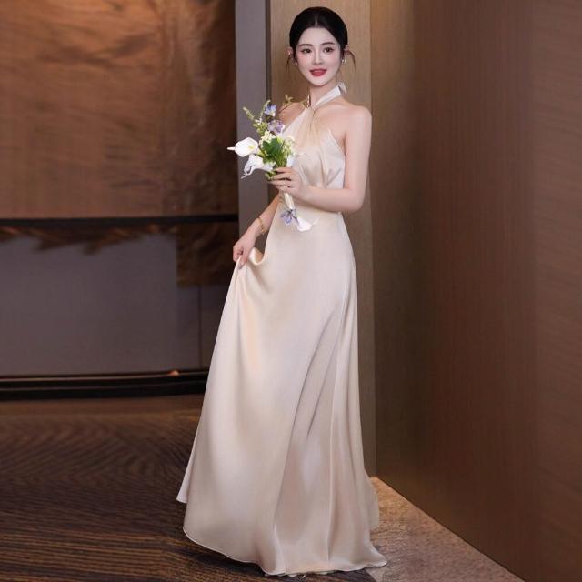 香槟色緞面伴娘服姐妹裙2025新款訂婚禮服裙女高級感絕美平時可穿
