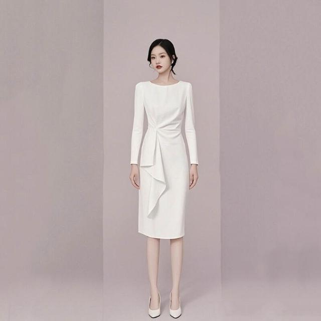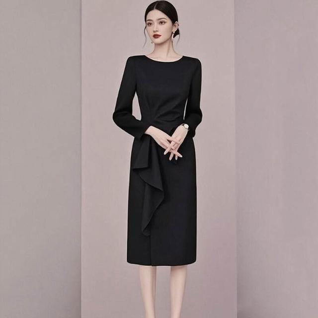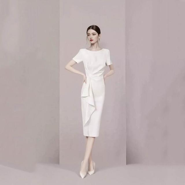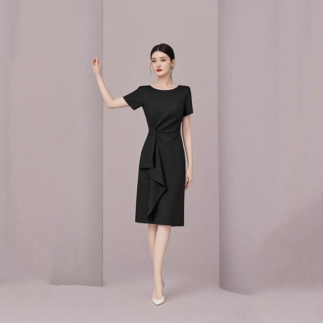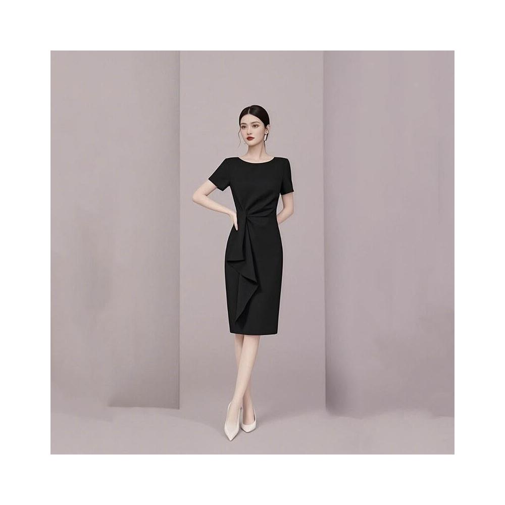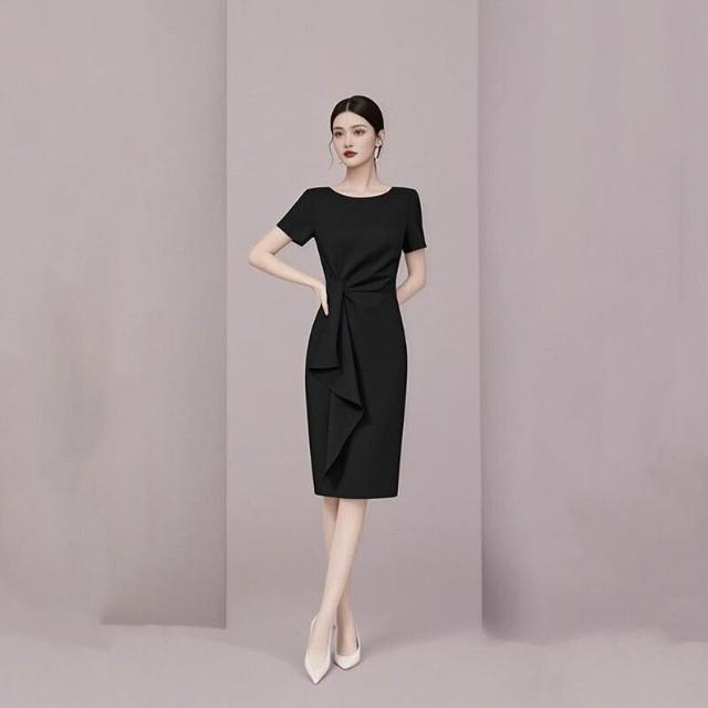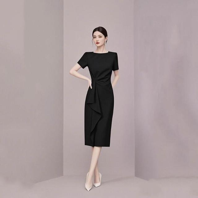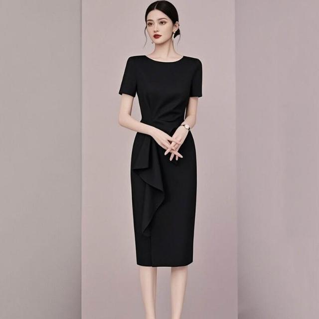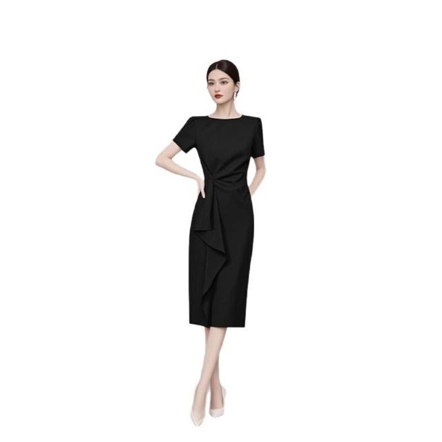 黑色短袖職業連衣裙高級感女夏季修身顯身材氣質晚禮服主持人裙子