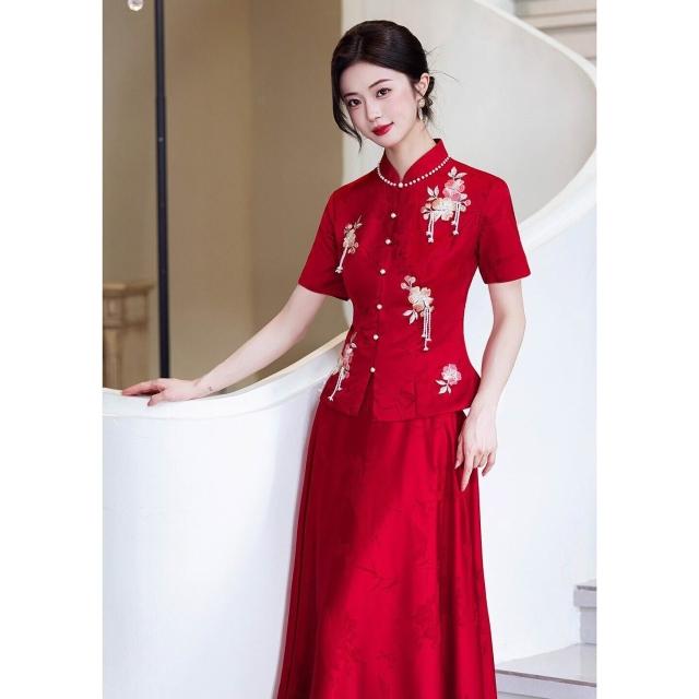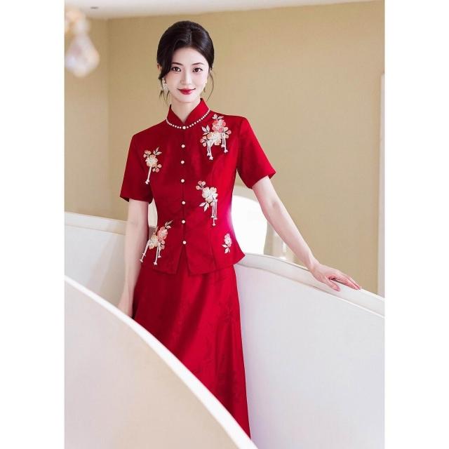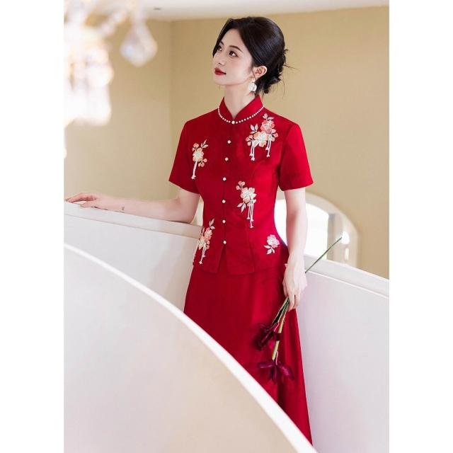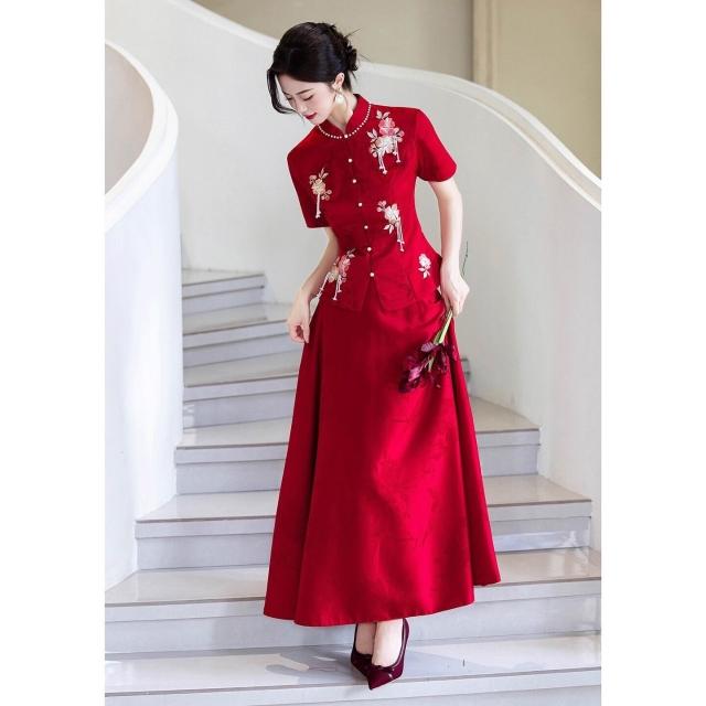紅色新中式旗袍敬酒服新娘2025新款訂婚結婚禮服女高級感婚禮回門
