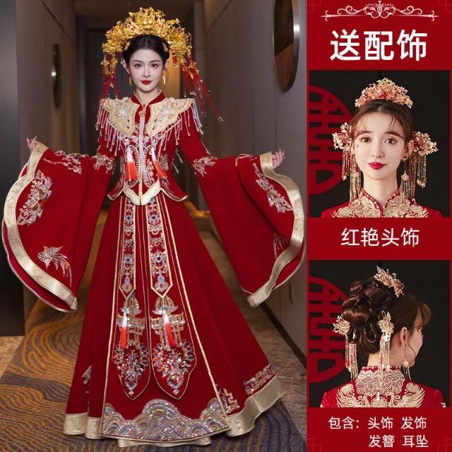 高端漢服秀禾服2025新款婚服新娘婚禮敬酒服嫁衣中式禮服鳳冠霞帔