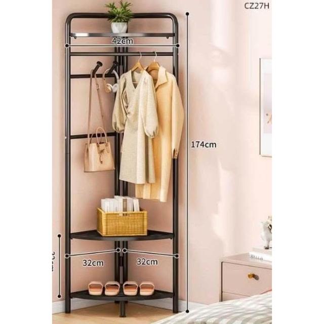 工廠直發 升級掛衣架 靠墻收納角落衣櫃 晾衣帽架 家用臥室拐角掛衣架 轉角落地架 碳鋼晾衣架