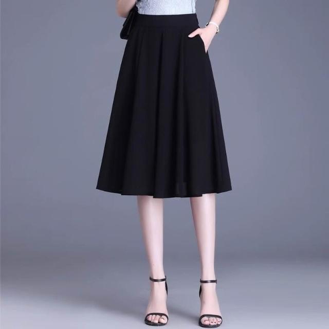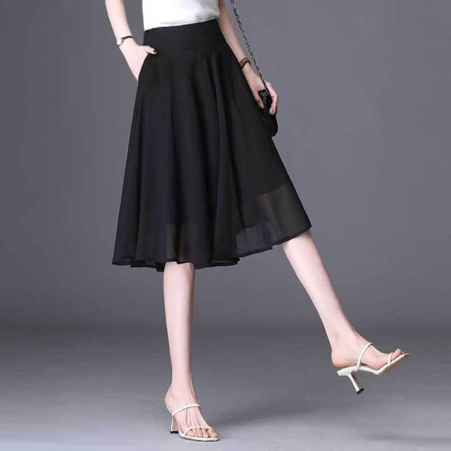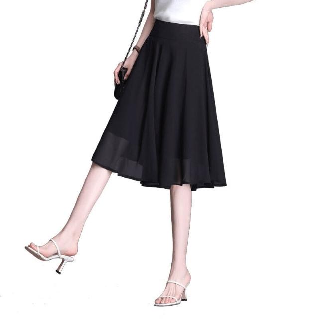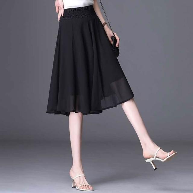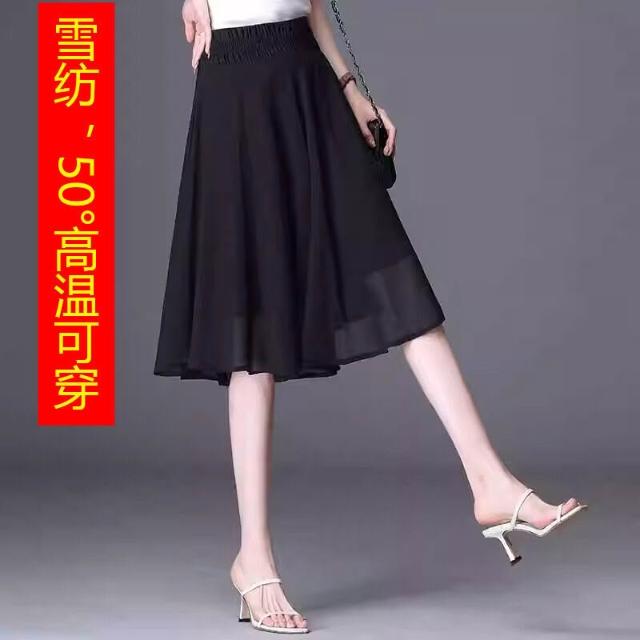 雪紡短裙a字裙大擺裙黑色百褶裙2025年新款中長款半身裙夏裙子女