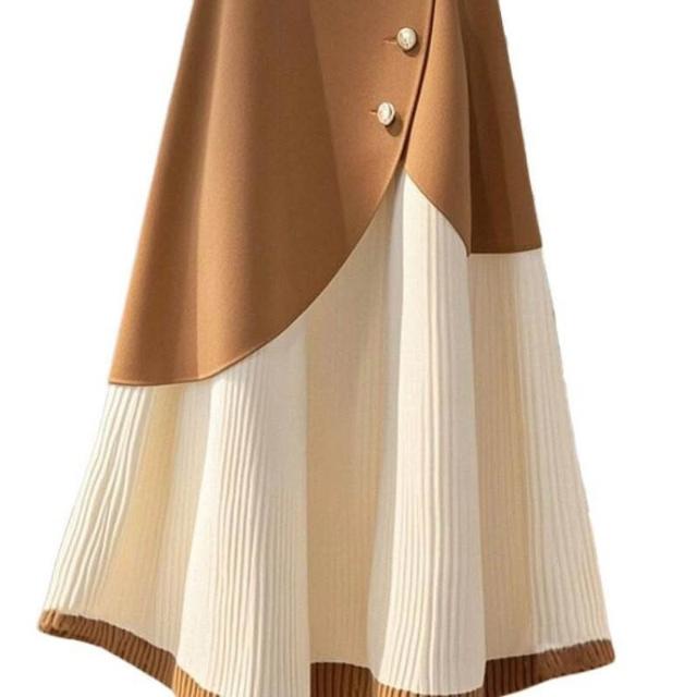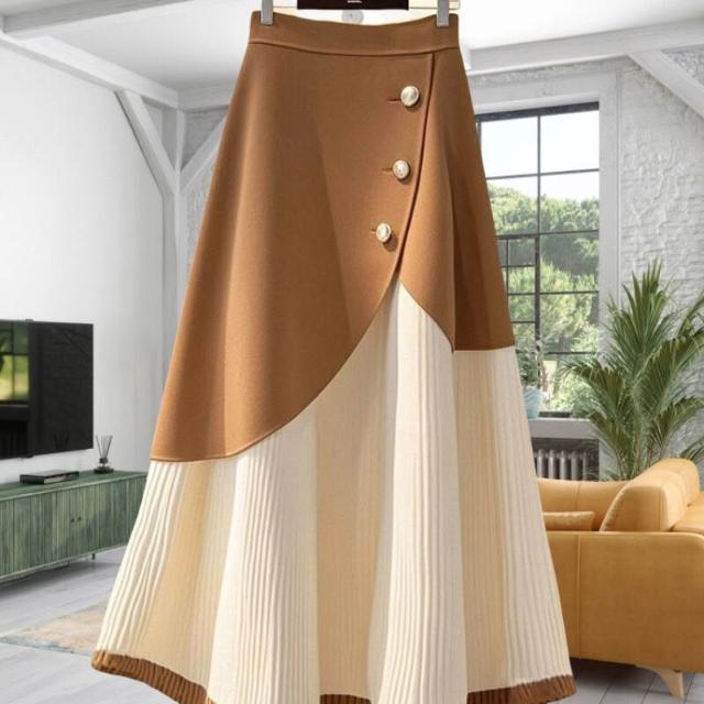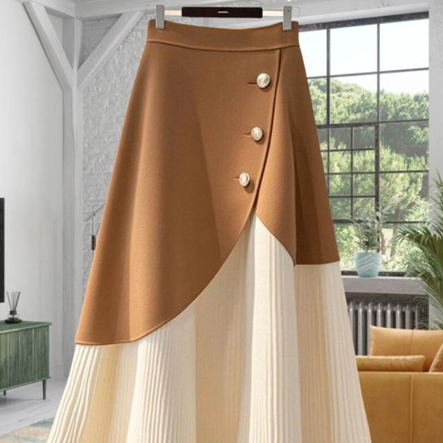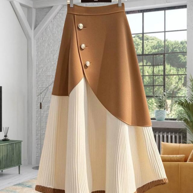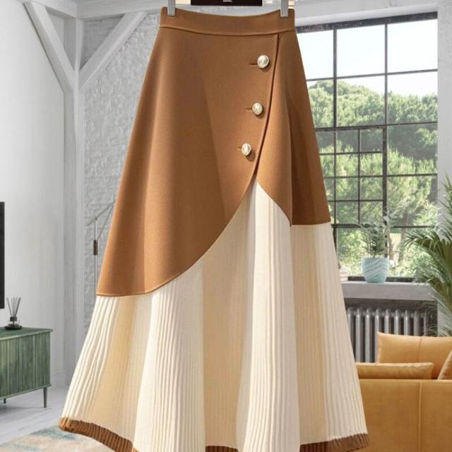 流行白咖色字半身裙2025秋冬時尚洋氣高腰拼接撞色長裙子女