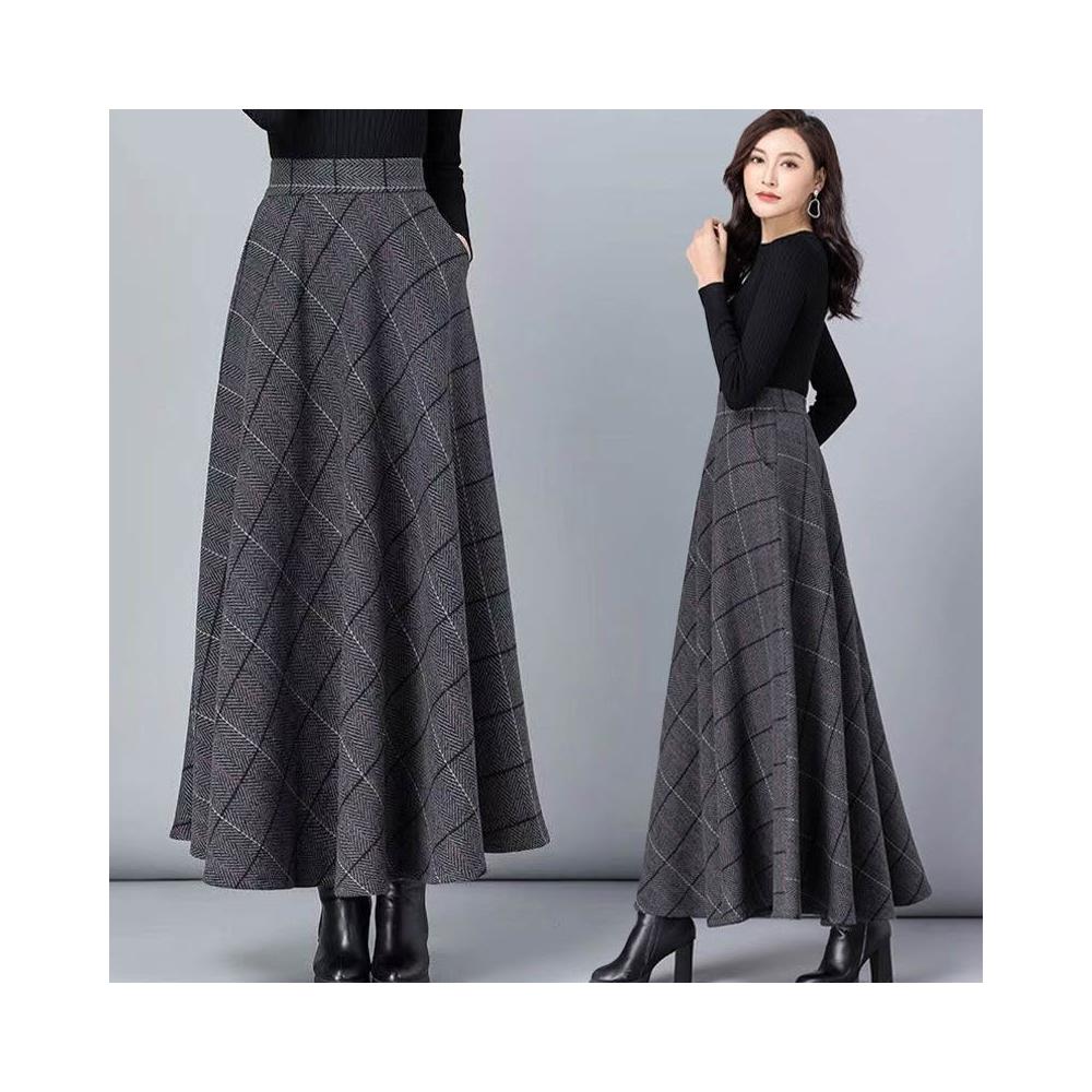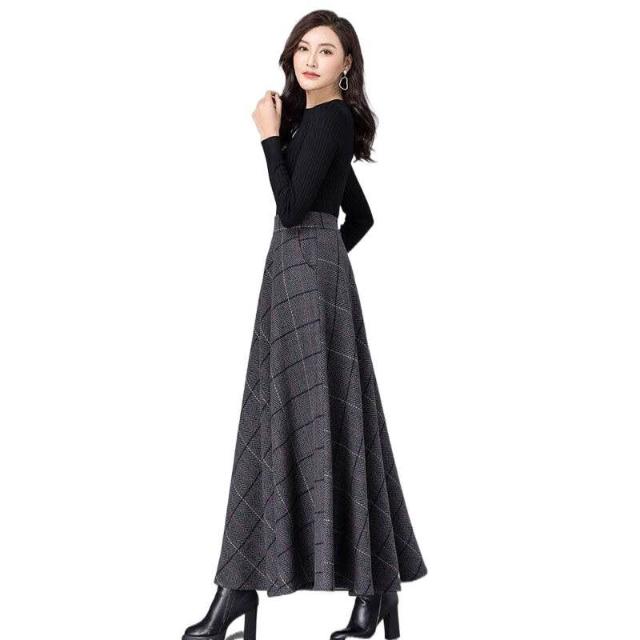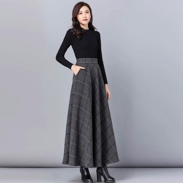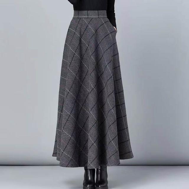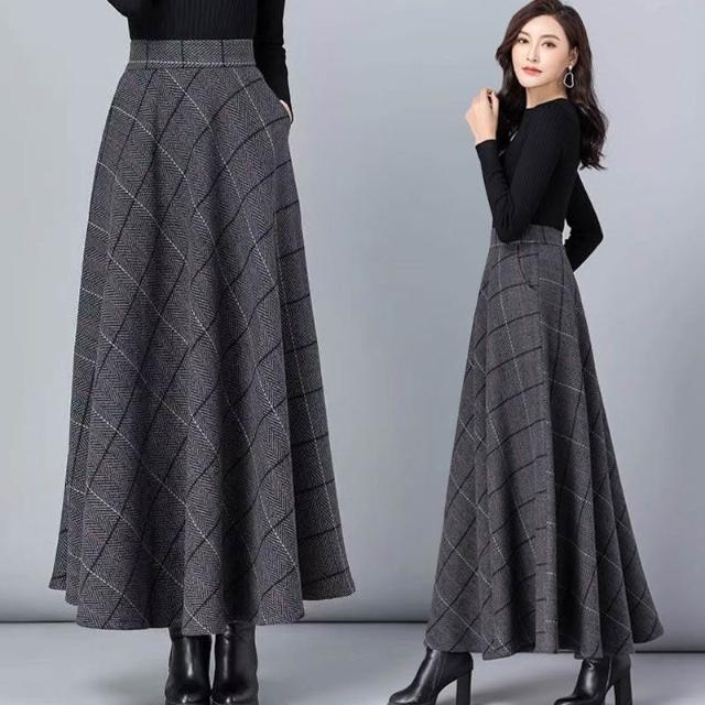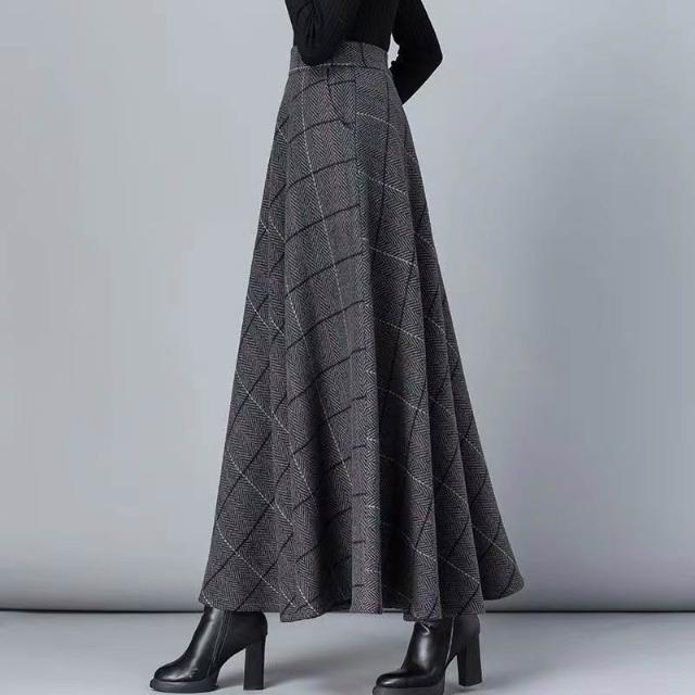秋冬毛呢加厚格子半身裙女2025百搭高腰A字裙中長款顯瘦大碼長裙