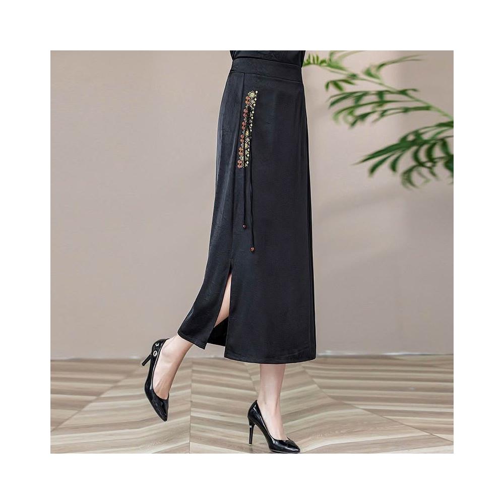大碼旗袍半身裙女國風新中式提花直筒夏裝新款開叉刺繡裙子女