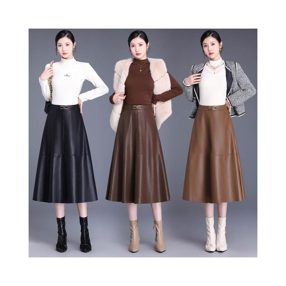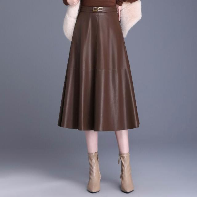 品牌秋冬真皮包臀半身裙韓版舒適顯瘦時尚氣質綿羊皮A字皮裙