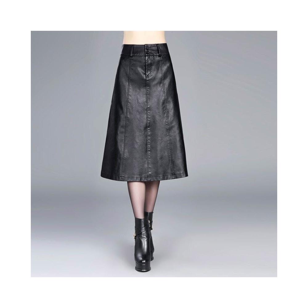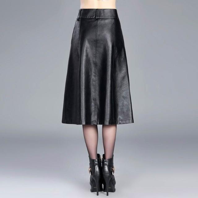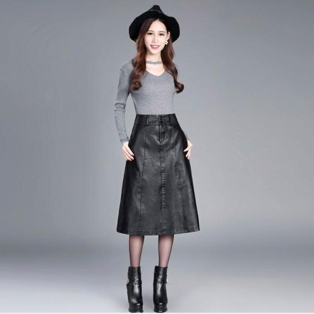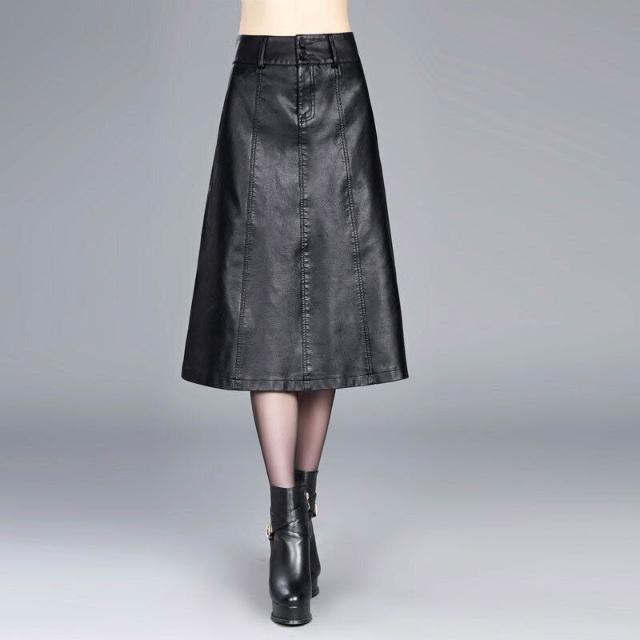 秋冬新款女裝皮裙中長款百搭半身裙顯瘦字裙高腰大碼包臀裙