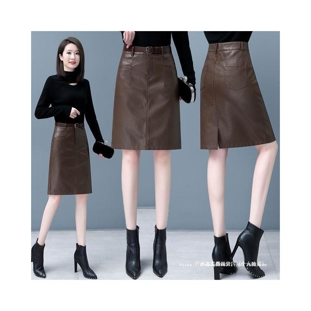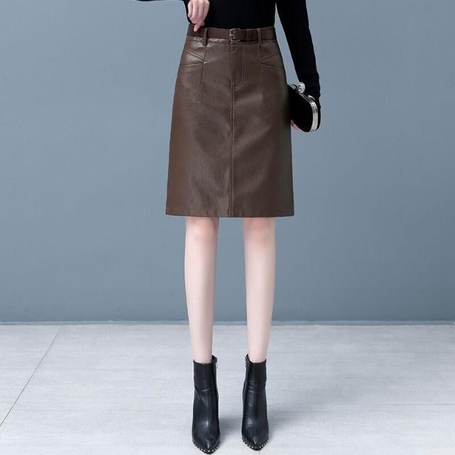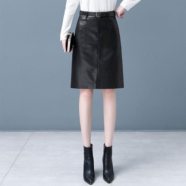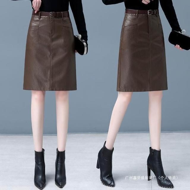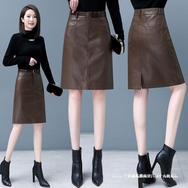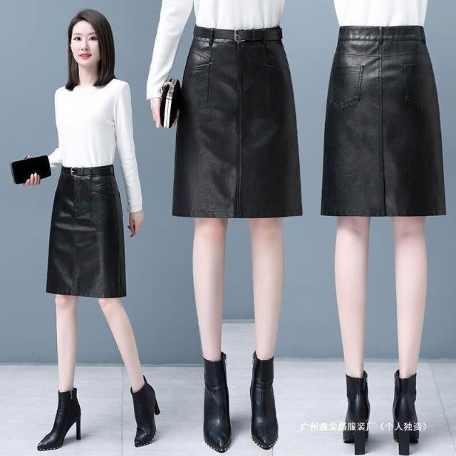新款顯瘦氣質時尚皮2025秋冬中長款A裙子高腰包臀半身裙裙女裝字