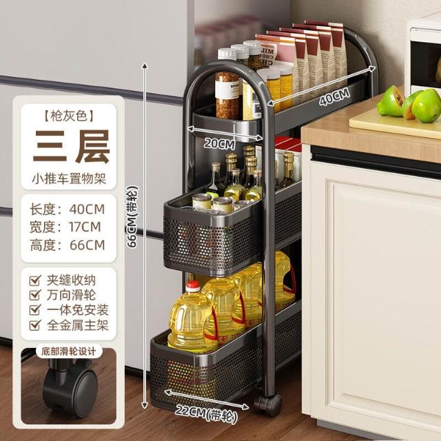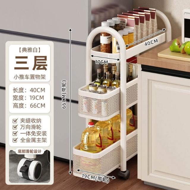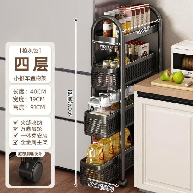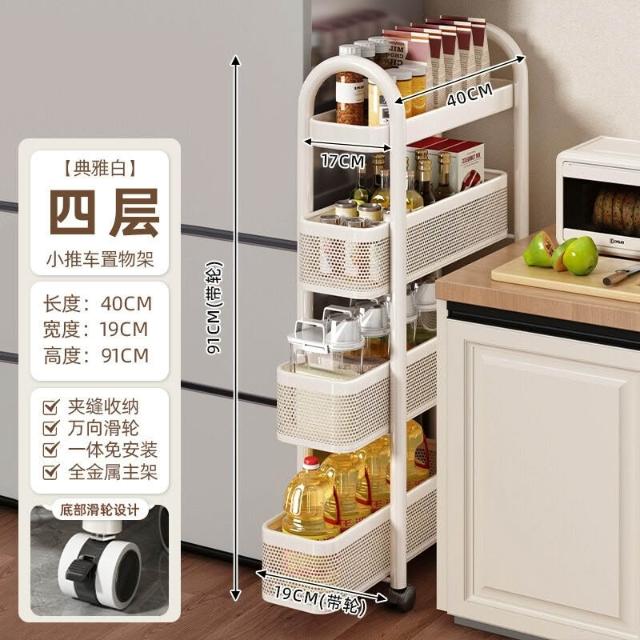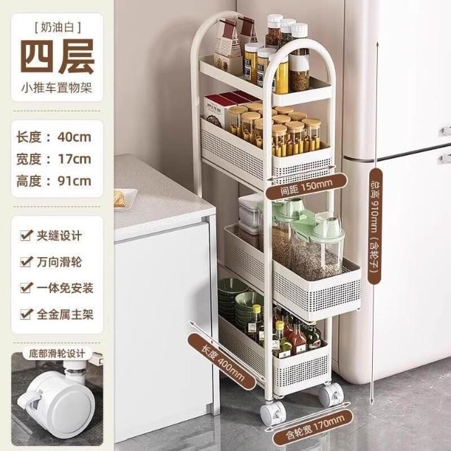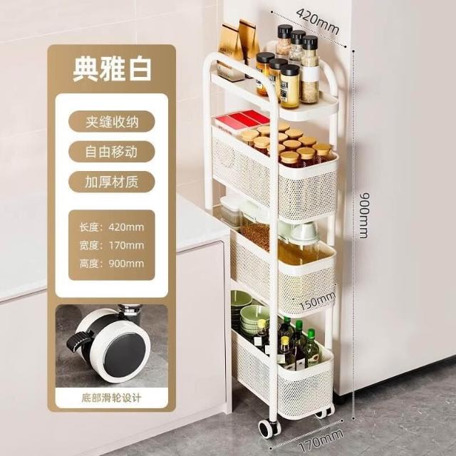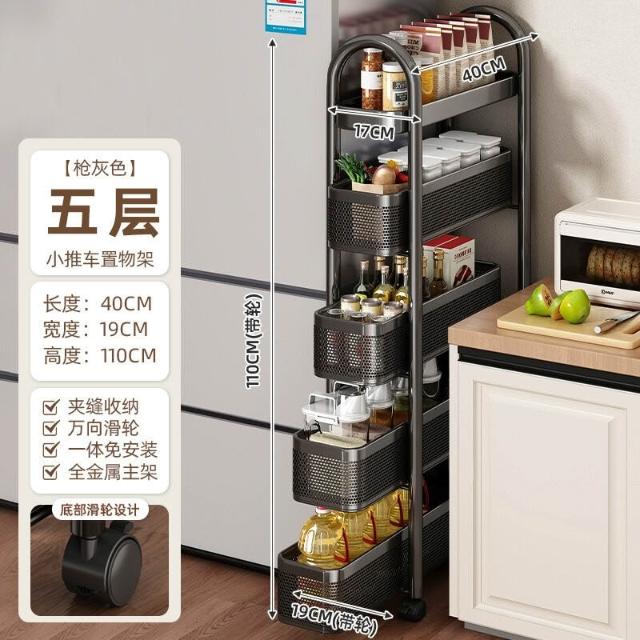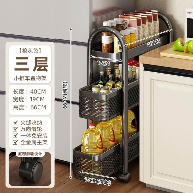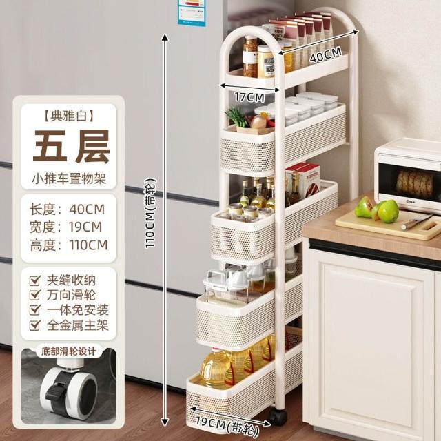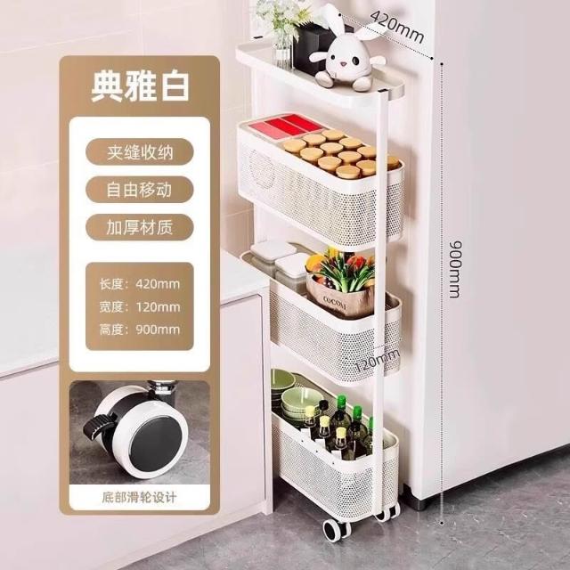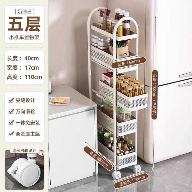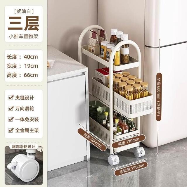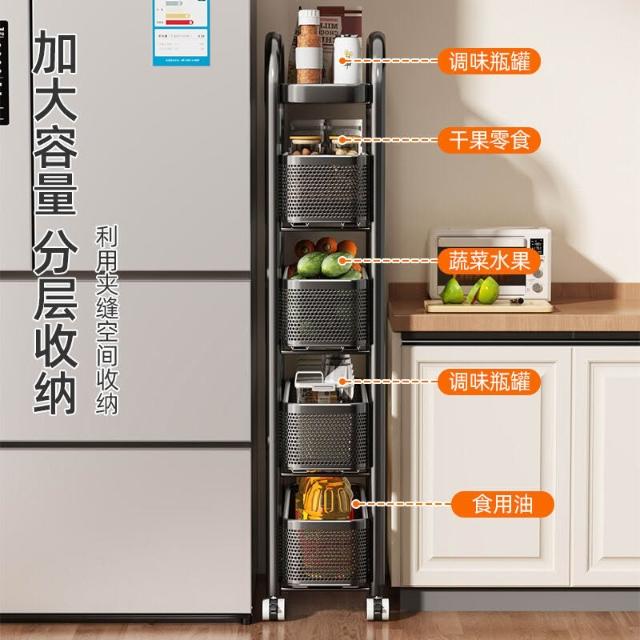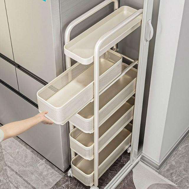 優勤廚房夾縫置物架落地多層冰箱側面抽拉櫃極窄縫隙收納櫃小推車