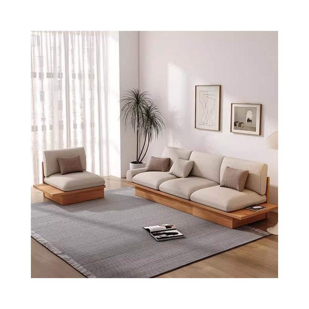 侘寂風格實木沙發日式原木風三人位沙發現代簡約北歐儲物沙發組合
