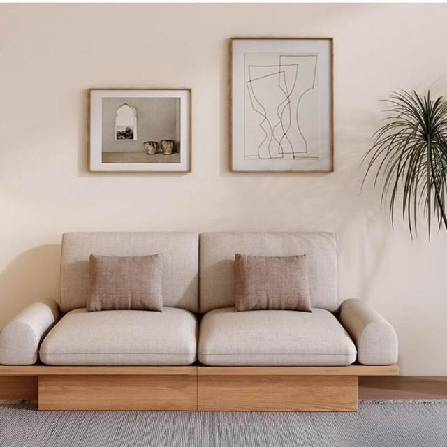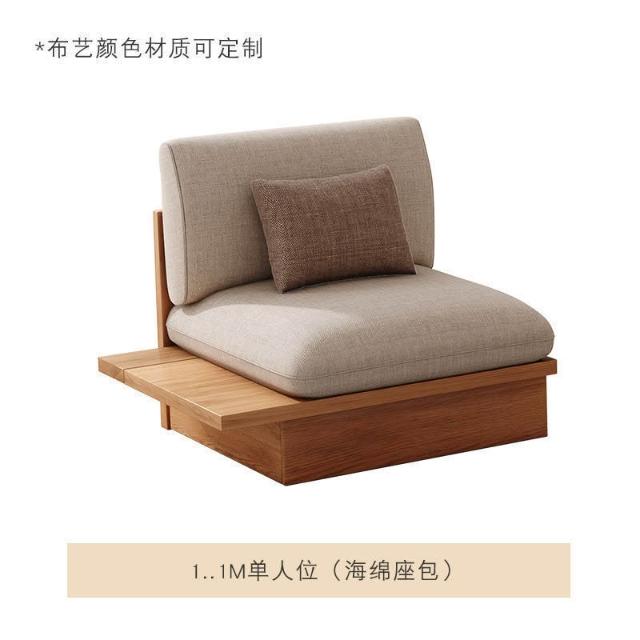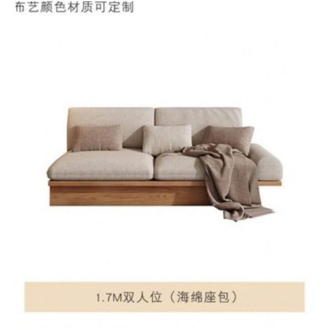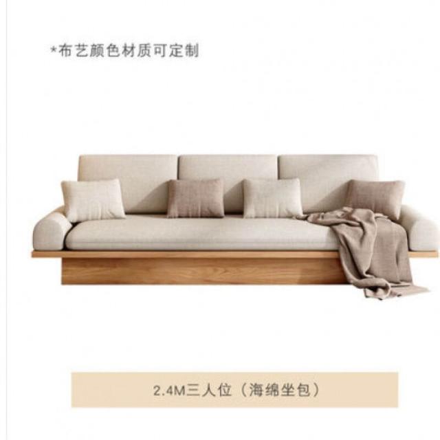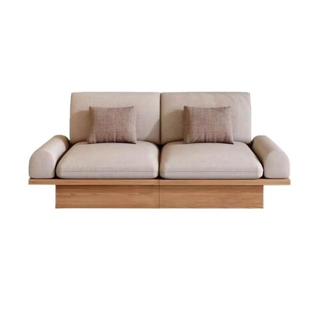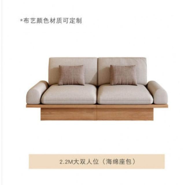 侘寂風格實木沙發日式原木風三人位沙發現代簡約北歐儲物沙發組合